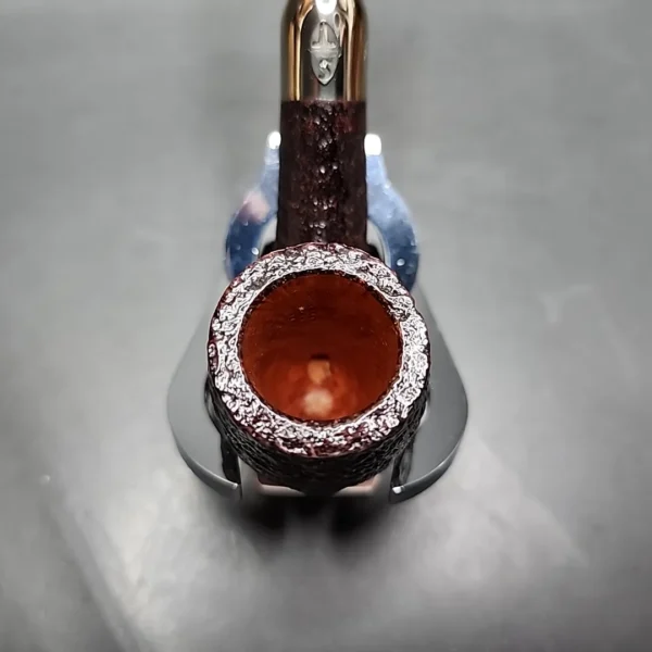 This sandblasted version features some exquisite ring grain, with a modest, dark brown stain. It is completely unsmoked, having come to us via our trade-in program from an Italian high-grade pipe collector. The pipe comes with a standard Savinelli box and sleeve.