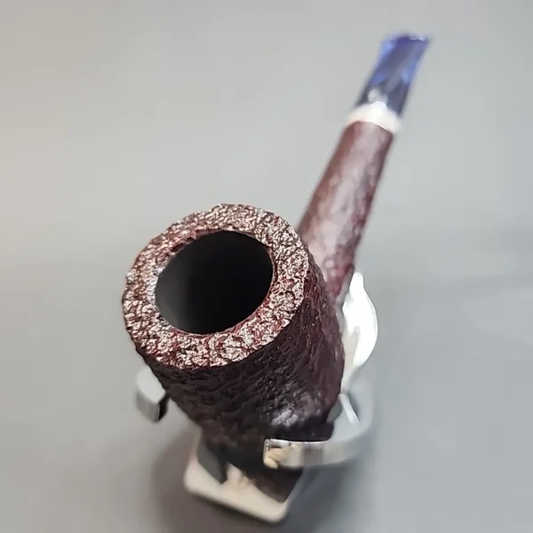 A festive presentation fit for the season, the 2023 edition of the Saint Nicholas series elevates a range of Savinelli’s most popular shapes with a dark burgundy stain, concise rustication, and a mouthpiece of deep blue acrylic. A complex accent of nickel and white acrylic completes the aesthetic, echoing the look of snow and tinsel. The finish is available here in Savinelli’s 804 KS Canadian.