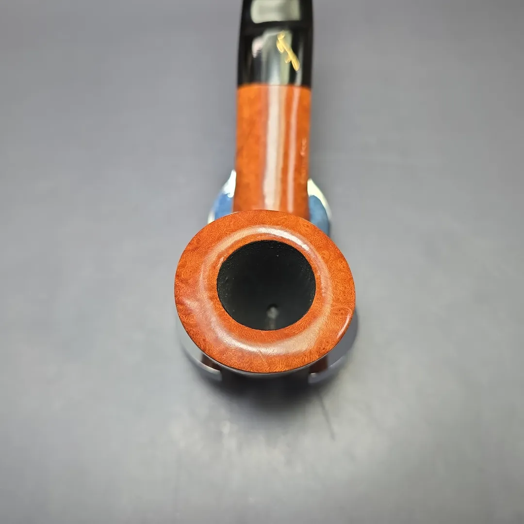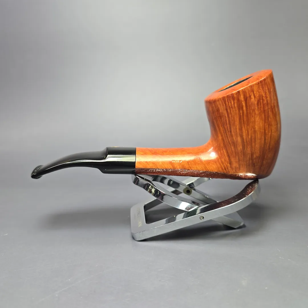 Like the Charatan freehand workshop in mid-20th century England, or Tsuge’s Ikebana workshop in late 20th century and 21st century Japan, Savinelli has its own, special area of the company’s campus reserved for master artisans, where non-standard pipe shapes are carved using techniques that are closer to handicraft than mechanized, mass production. Sometimes the Autograph workshop produces hand-turned re-imaginings of more classic designs; and other times it produces pipes that are a little more like the Danish “fancy” freehands of Preben Holm et al.; and, most often, Autographs are somewhere in between, embodying a distinctly Italian approach to handmade pipes that sits about halfway between the English and Danish styles. This one is another example of that “sweet spot” between the Brits and the Danes, with the closest analog, to my mind, being the “Traditional” series made by the aforementioned Holm. After all, it’s a beautifully grained, oval shank Dublin pickaxe hybrid, though this juxtaposition of classic forms still remains recognizable within the Anglo-French paradigm, just slightly more modern.