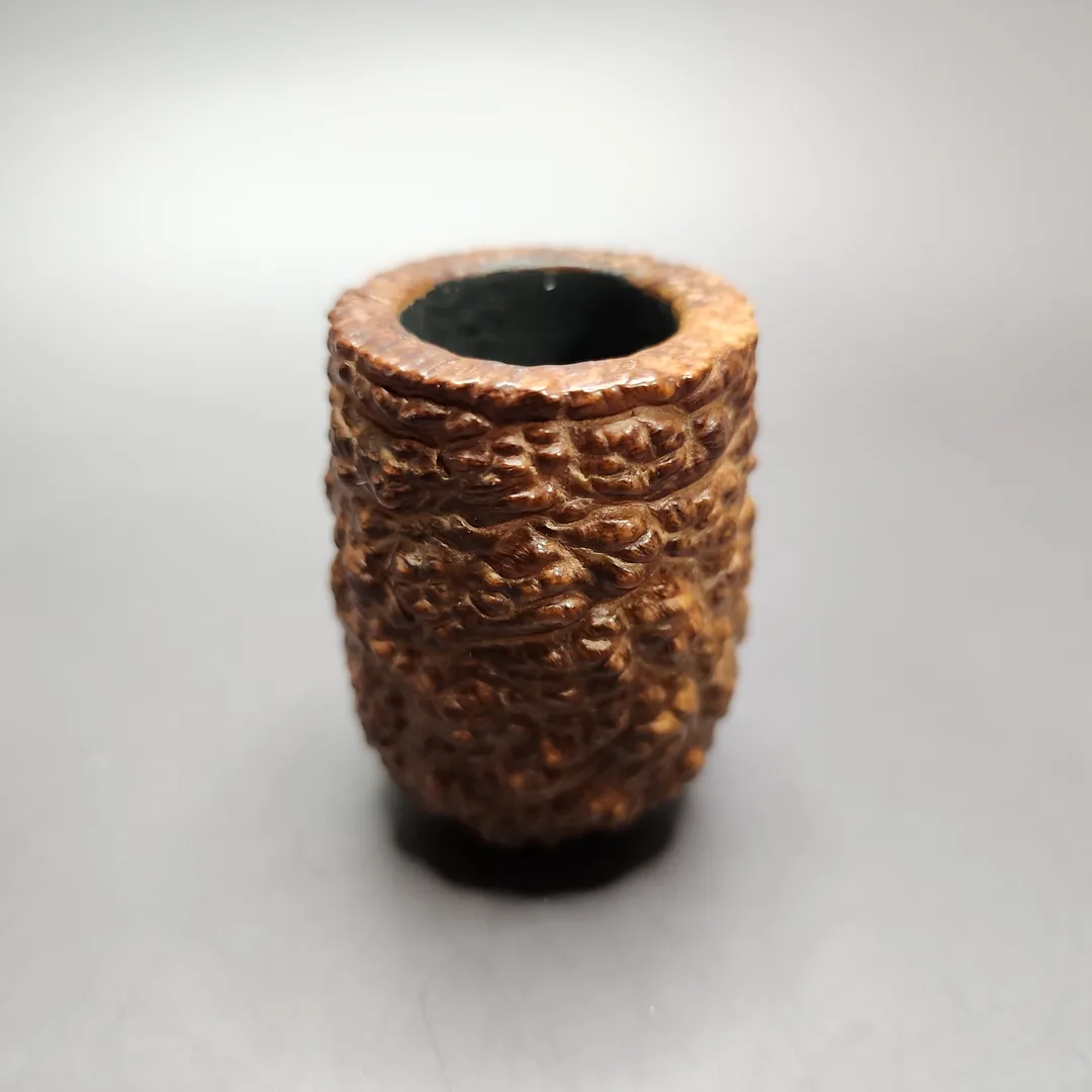 Along with Castello’s Sea Rock, Radice’s Rind, and the pipes of Paolo Becker, Savinelli’s Capri series represented a quintessentially Italian approach to rustication – one that’s fine and granular, and eminently tactile. Unfortunately, Savinelli doesn’t make the Capri anymore, though one can occasionally find the finish revived for the limited-release Punto Oro Corallo (sans stain) and Le Mie pipes. This one is rendered in Savinelli’s classic 803 KS lumberman shape and, unlike most Savinelli pipes today, features an unfiltered black vulcanite stem.