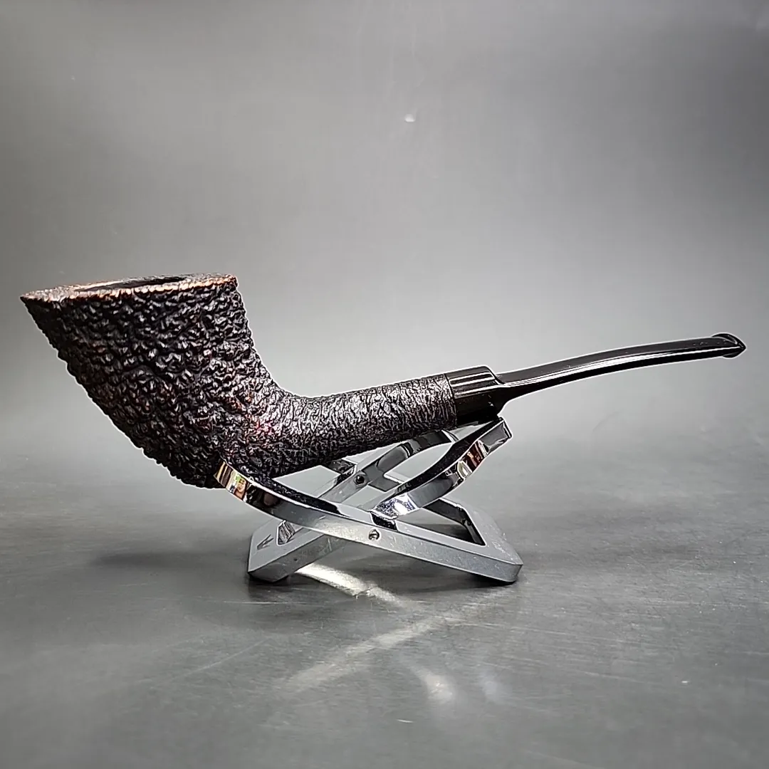 Savinelli’s Capri series were some of the earliest pipes offered by the make, and have been in and out of production throughout the make’s lifetime, though they were last made at least a decade ago. They feature the quintessentially Italian, pebble-dash rustication motif found across the nation’s great makes – Castello’s Sea Rock, Caminetto’s Business, Radice’s Rind, and so on. This Capri Root Briar wears a dark brown, near-black stain over its rocky stummel, and is rendered in what is today known as the “904KS” shape. Why is this one a “9004” and not a 904KS? Because it was made prior to the 1970s, when Savinelli moved to a three-digit numbering system. This should prick the ears of collectors, as should the vulcanite stem, which is rarely used on modern Savinellis, and the pipe’s original inner tube, highly reminiscent of the one made famous by Dunhill.