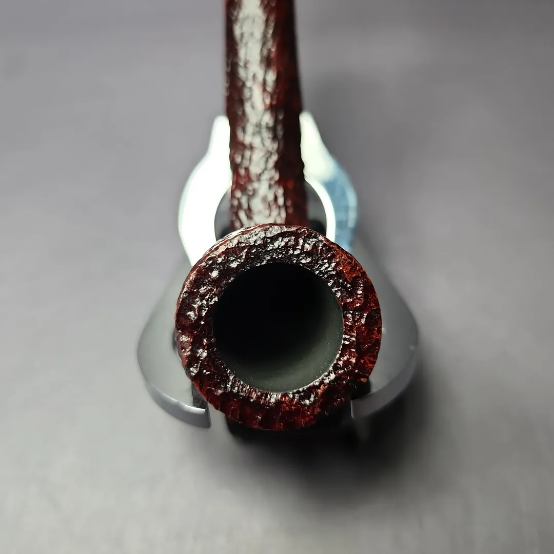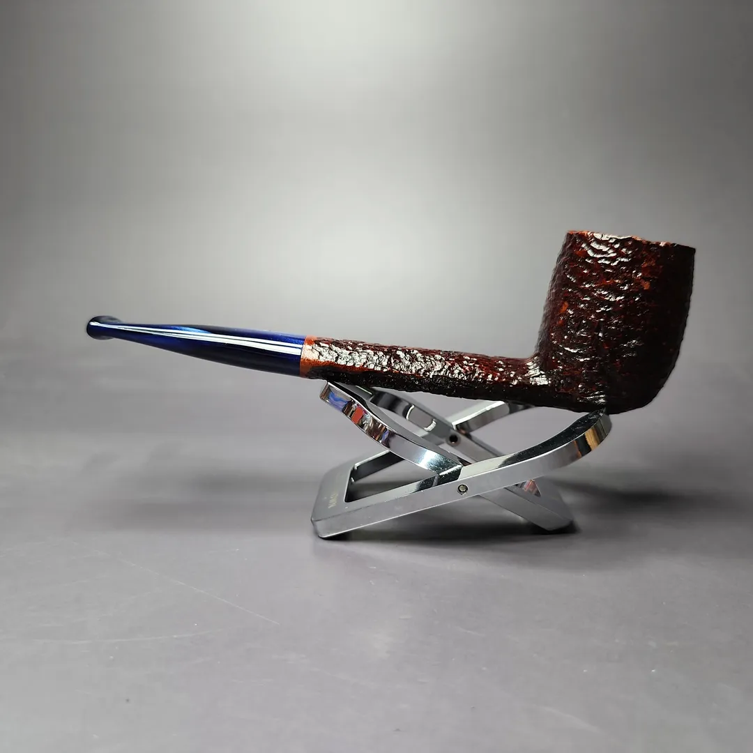 An Italian word for “explorer,” Savinelli’s Esploratore series is one comprised solely Canadian shapes. The series also features new finishes in keeping with its globetrotting theme. This Esploratore is rendered in Savinelli’s 801 Canadian shape, and is dressed in the rusticated variant of the Marinaio finish – another Italian word, whose English equivalent is “mariner.” Weighing just 30 grams and showing off a tasteful blue stem, the pipe should be perfect for clenching while you’re out on the waters, or indeed doing just about any activity – land, sea, or air.