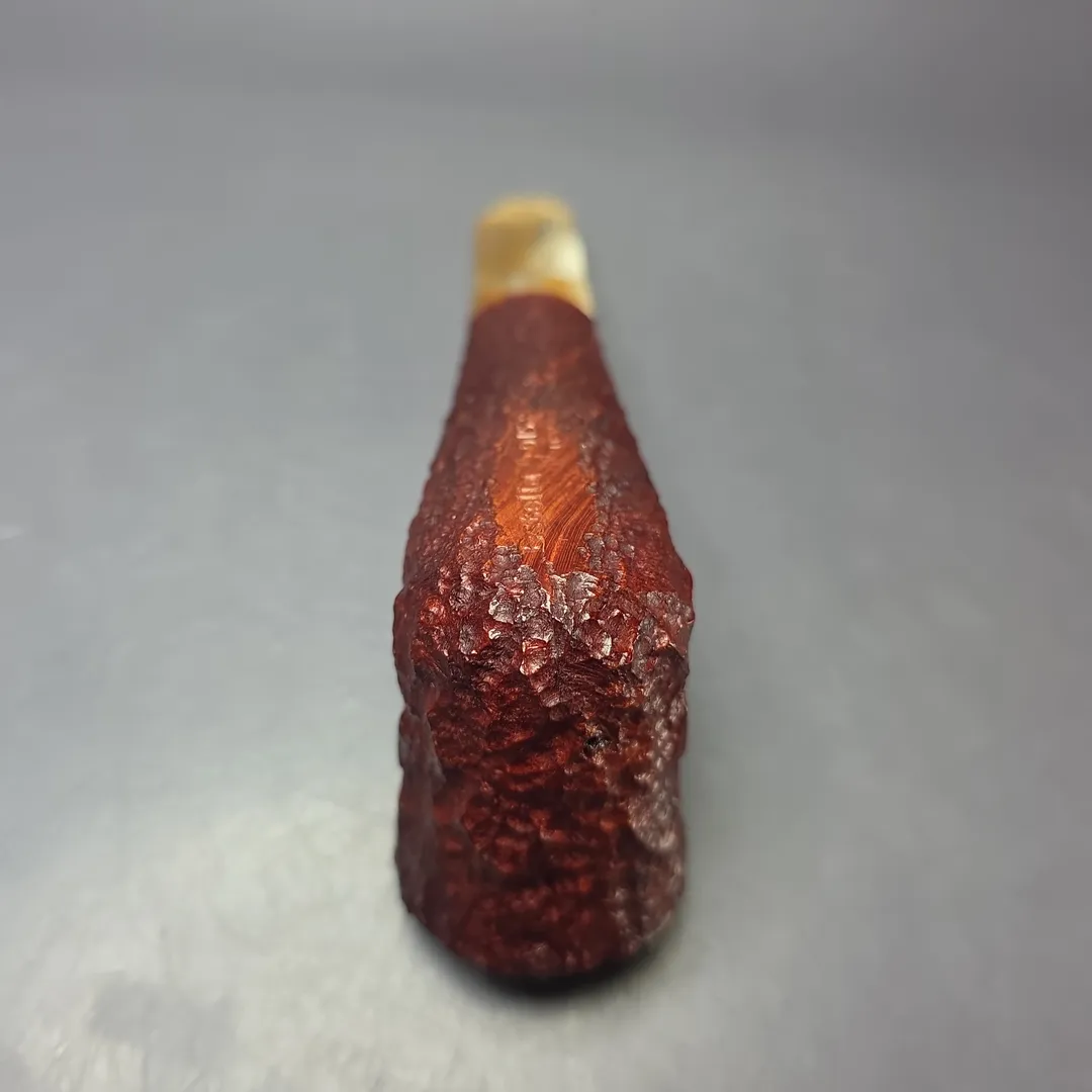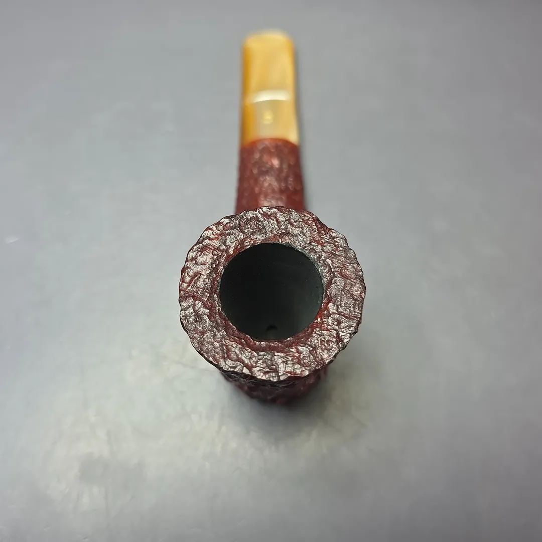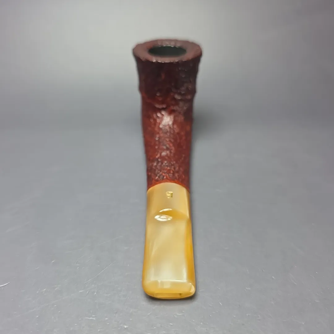 The Estella is a genuine cult classic within the Savinelli catalog, one that is only more so for being briefly produced many decades ago. It was, as seen on this example, a rusticated line whose finish is somewhere between the granular approach of Castello’s Sea Rock and Caminetto’s “wax drip” New Dear lines. But, for some reason, the Estella went through various, sporadic phases of discontinuation, revival (such as the Estella Nonpareil), and discontinuation once again. This is one of the iterations that adhered, albeit loosely, to Savinelli’s shape charts—in this instance, the (also discontinued) shape 915 EX, an extra large, very distinctive Dublin. As with most Estellas, this one features that same signature rustication, along with one of the series’ similarly recognizable colorful Lucite stems.