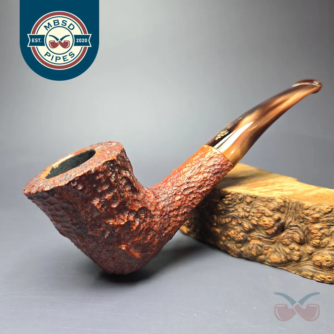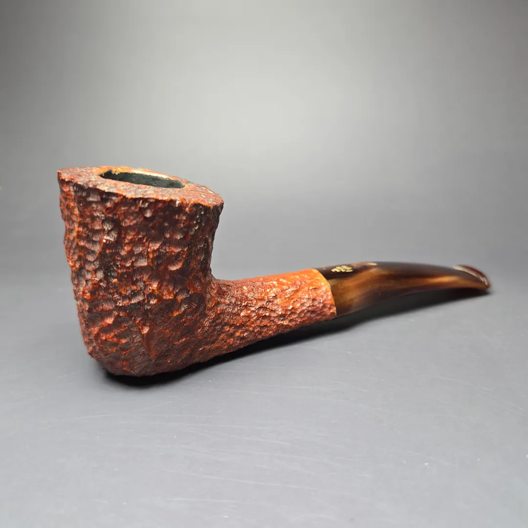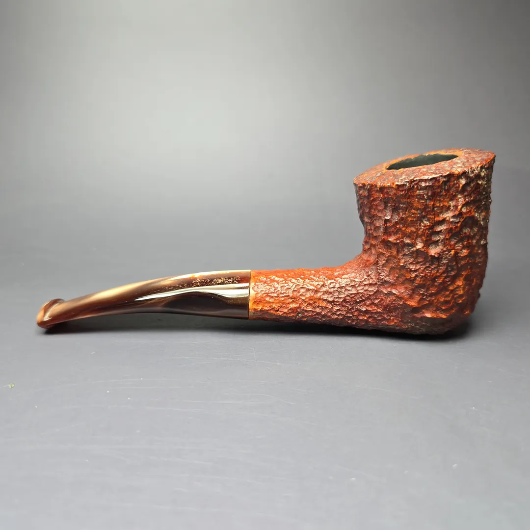 The Estella is a genuine cult classic within the Savinelli catalog, one that is only more so for being briefly produced many decades ago. For some reason, the Estella went through various, sporadic phases of discontinuation, revival (such as the Estella Nonpareil), and discontinuation once again. This one looks to be from one of the first iterations of the Estella, which were freehands not entirely unlike Savinelli’s Autograph series. Like Savinelli’s Autograph freehands, Estellas tend to be on the large side, though unlike the majority of Autographs, the Estella line is known for its intensely rugged rustication, as well its colorful Lucite stems. This one is a deep-chambered, tall freehand Dublin, for instance, with a bronze mouthpiece that, while certainly Lucite, is quite evocative of the antique Bakelite used by many artisans today.