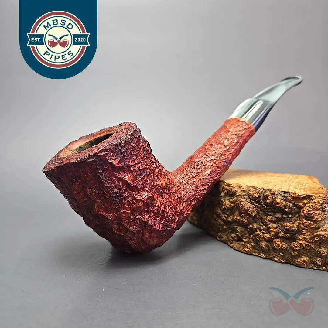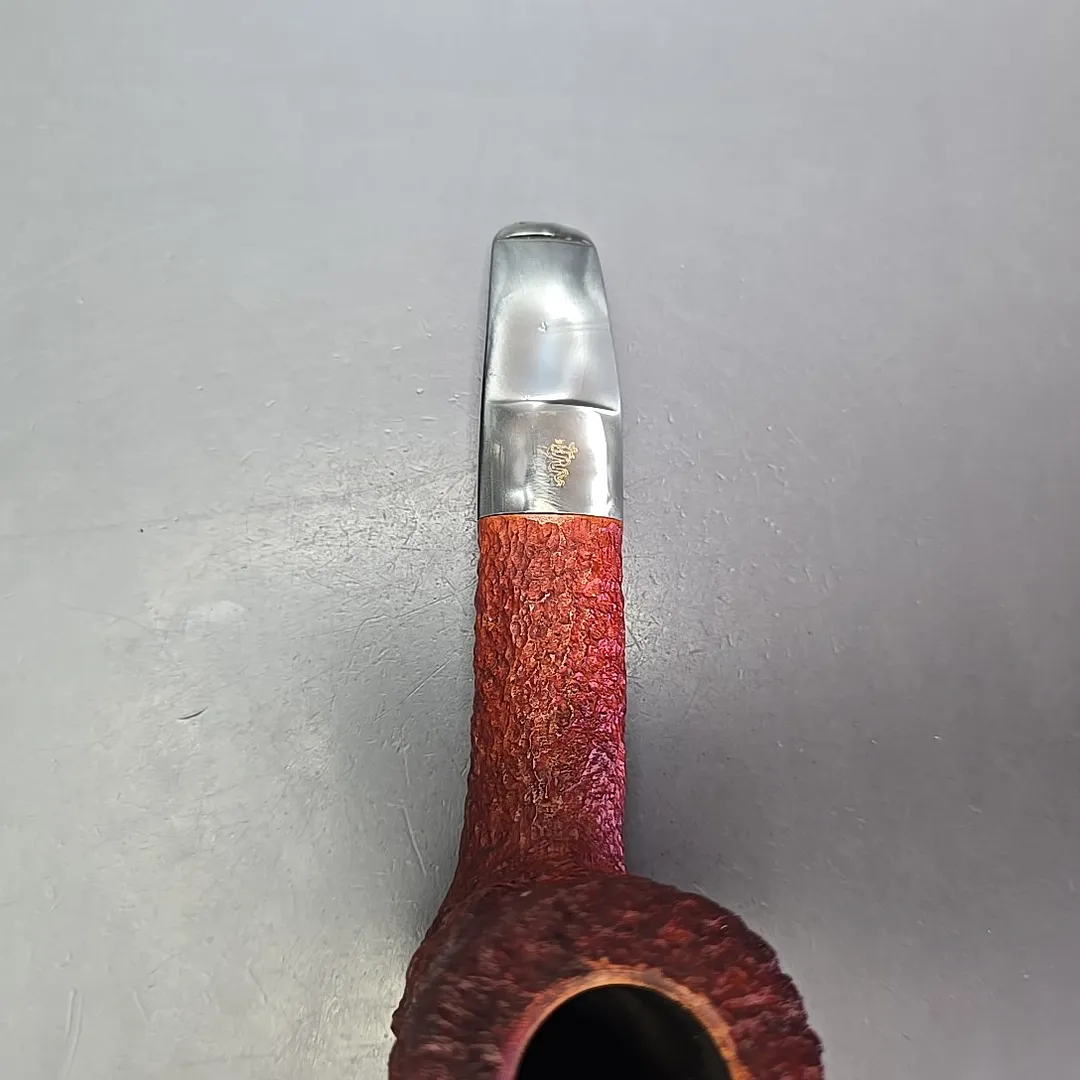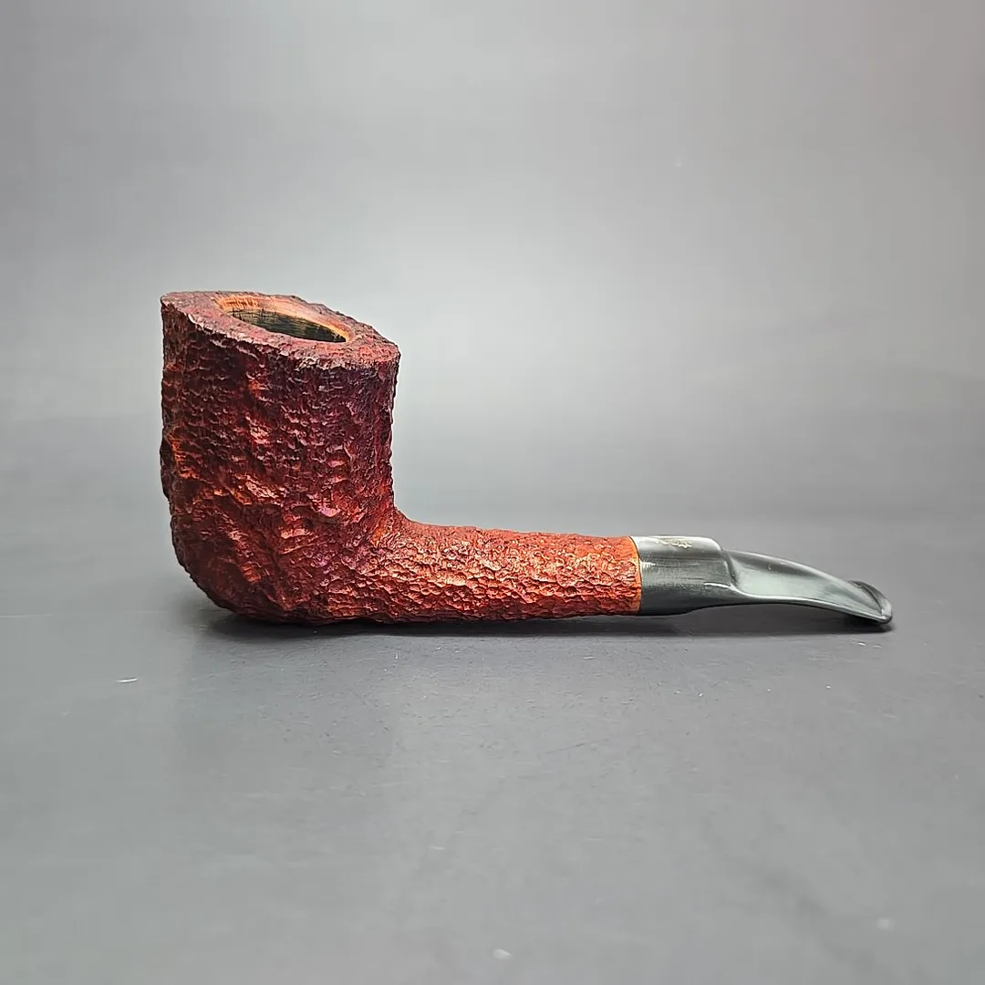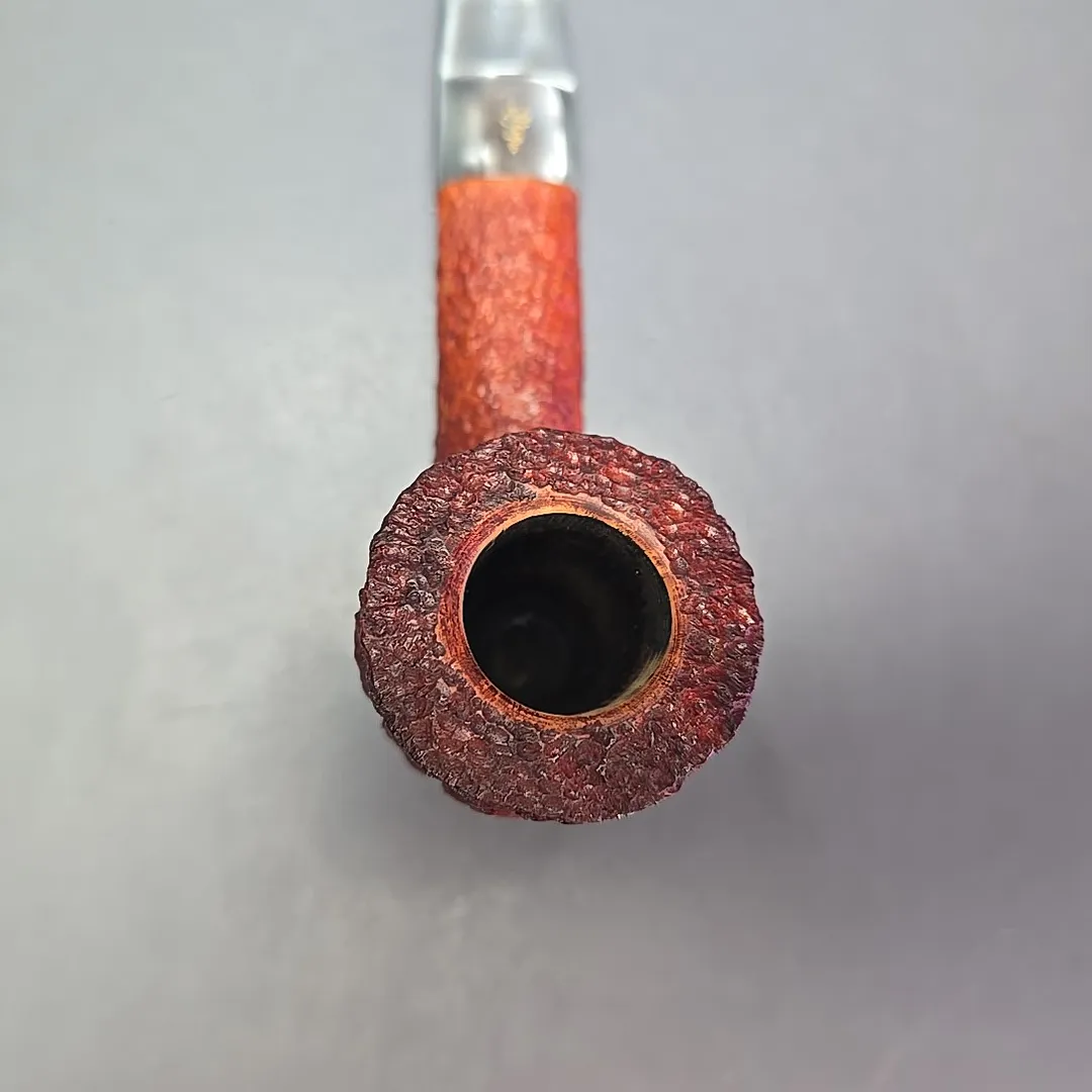 The Estella is a genuine cult classic within the Savinelli catalog, one that is only more so for being briefly produced many decades ago. It was, as seen on this example, a rusticated line whose finish is somewhere between the granular approach of Castello’s Sea Rock and Caminetto’s “wax drip” New Dear lines. But, for some reason, the Estella went through various, sporadic phases of discontinuation, revival (such as the Estella Nonpareil), and discontinuation once again. This one looks to be from one of the first iterations of the Estella, which were freehands not entirely unlike Savinelli’s Autograph series. Like Savinelli’s Autograph freehands, Estellas tend to be on the large side, though unlike the majority of Autographs, the Estella line was known for its intensely rugged rustication, as well its colorful Lucite stems, both of which feature prominently on this one.