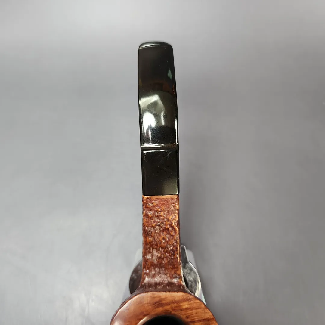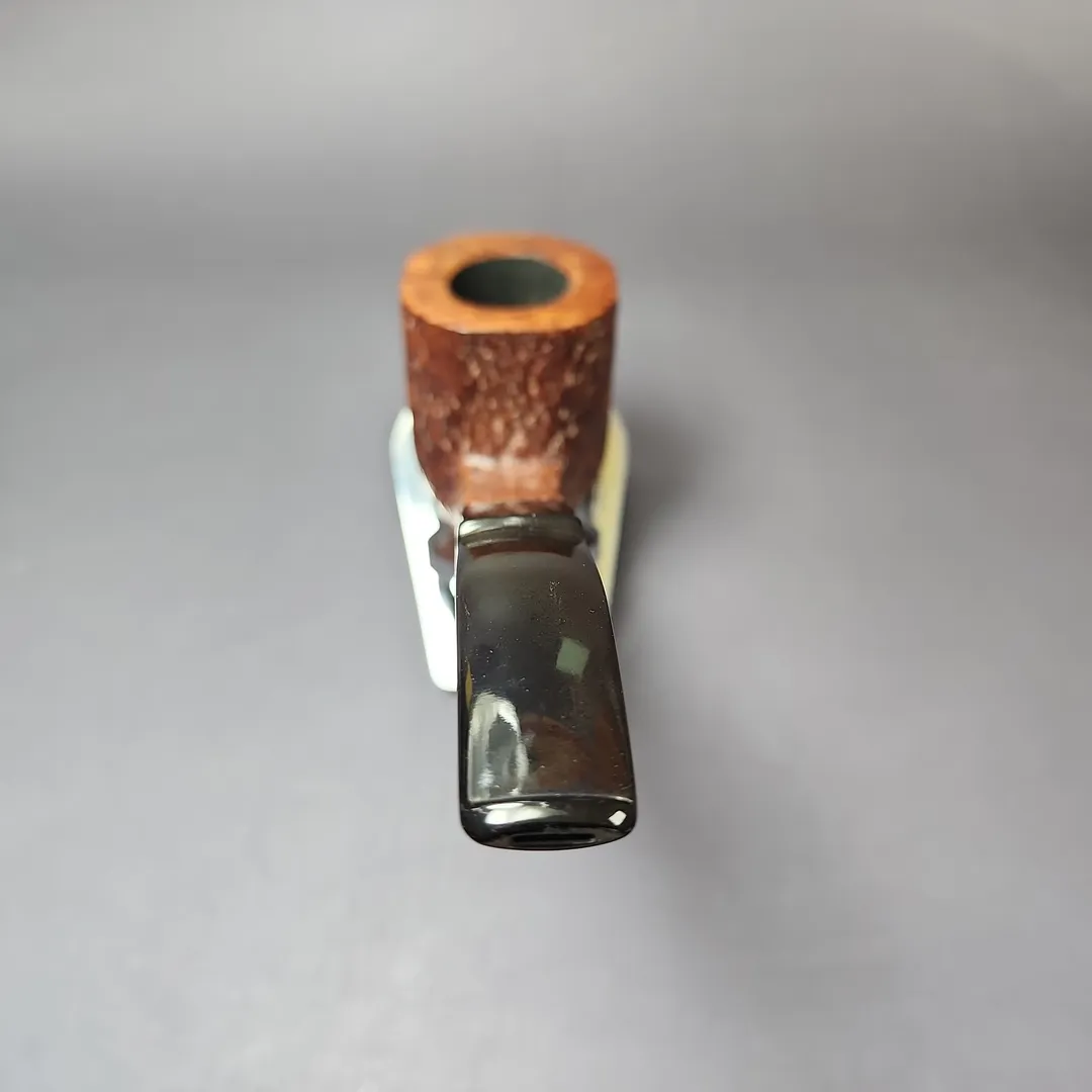 Savinelli’s Hercules series is one whose pipes are larger, stouter, and feature wide, deep chambers, well suited for longer smokes, or for mixture and ribbon cuts requiring a greater surface area for the burn. This particular Hercules is a unique design, being Savinelli’s shape 619 EX. It’s a bent pot, but with a foursquare-style paneled bowl and shank. This shape is dressed in a light, very Italian rustication, with its rim left smooth and polished.