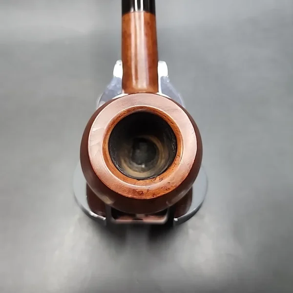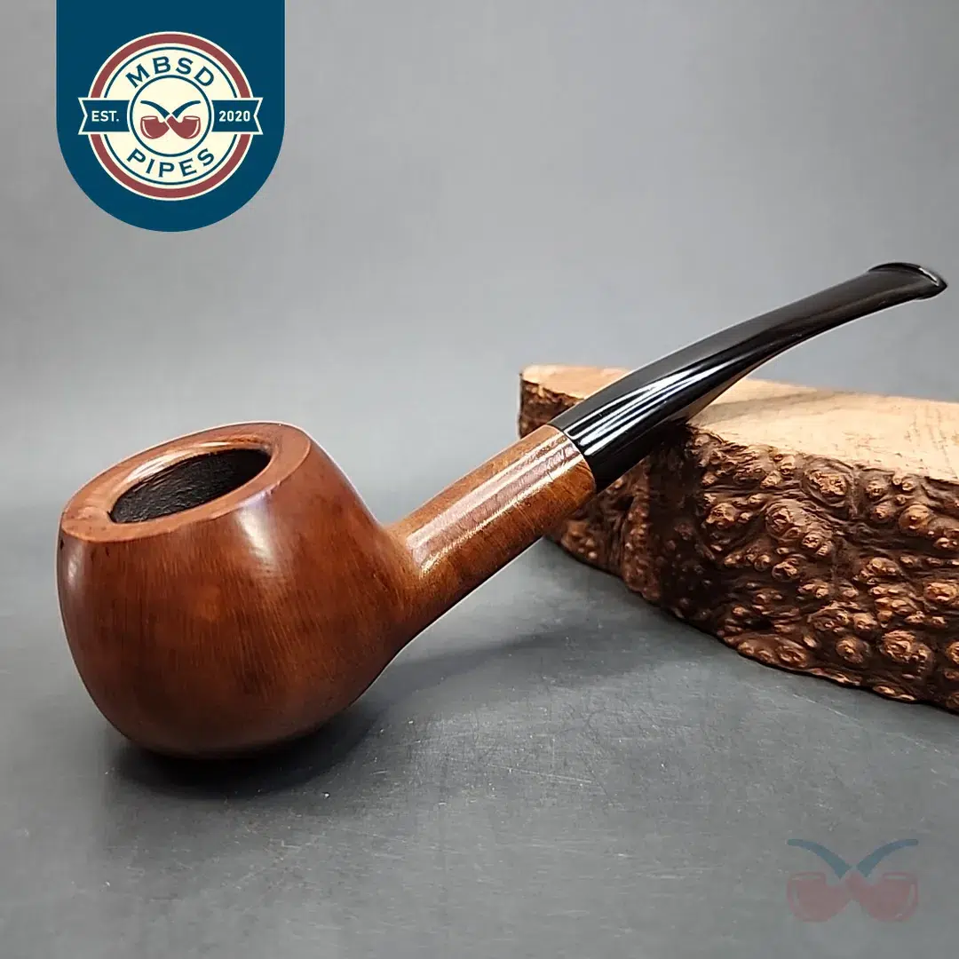 As a disclaimer, this pipe was certainly made by Savinelli, as it features the Savinelli emblem in its nomenclature, but unless the rest of the stamping has worn off, this may be one of their seconds. There are a couple of natural imperfections in the grain, so that would make sense. This is, however, nothing to say that the pipe looks bad or that it won’t smoke well. Savinelli has often sold pipes under various sub-brands and seconds lines that simply didn’t quite fit their exacting aesthetic standards. The pipe itself is a traditional prince, with a very Italian and very natural strawberry-blonde stain. Whatever its provenance, it’ll be a solid smoker.