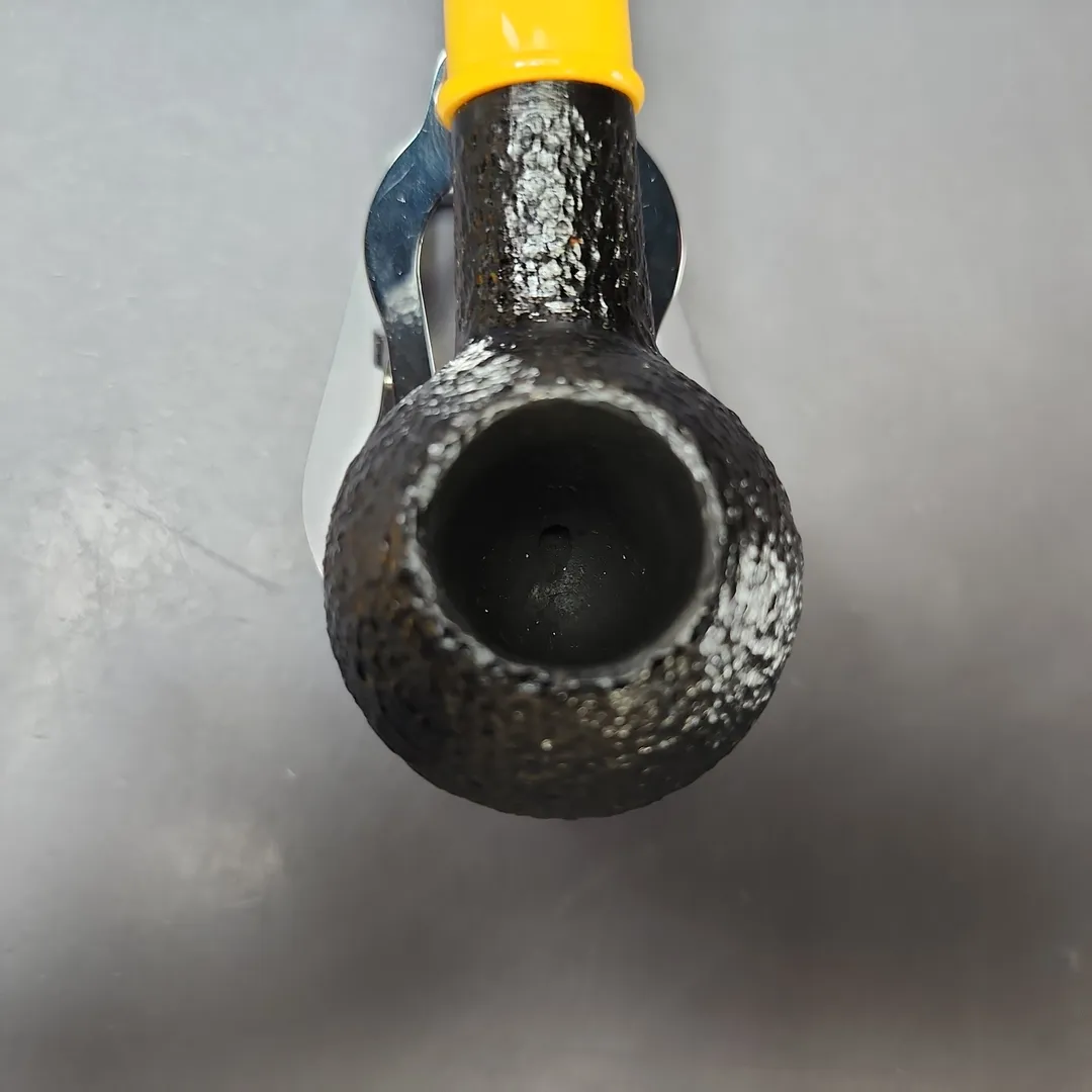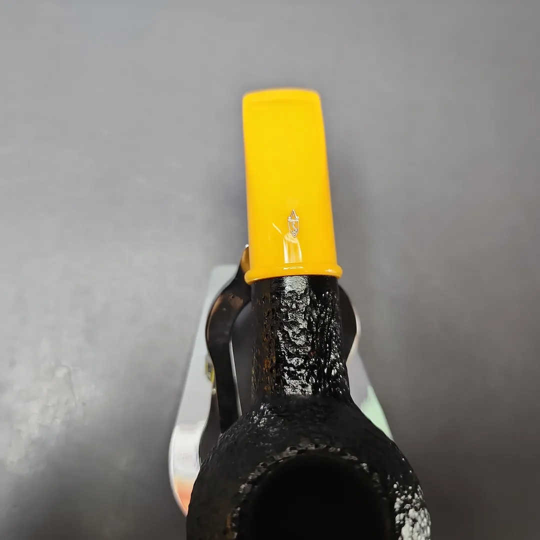This particular Savinelli is part of the make’s “Mini” series which, as the name suggests, is one comprised of smaller pipes, perfect for smoking on-the-go. But, being Savinelli, there’s a colorful twist added to these lightweight, pocket-friendly companions, in the form of stems of various brighter hues. This pairs a bowl distinguished by its near-black stain and light, sandblast-like rustication, with a yellow Lucite stem reminiscent of amber or Bakelite.