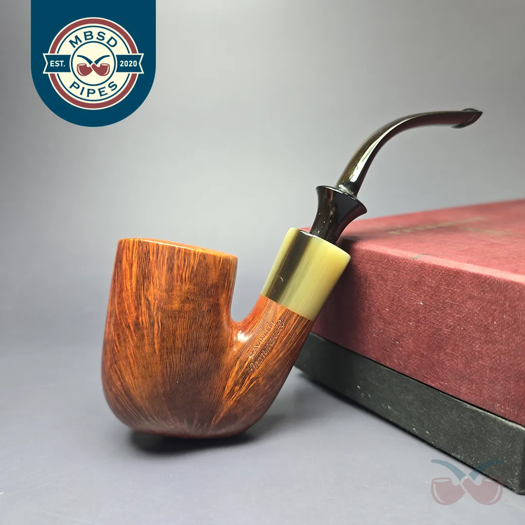 Taking its name from an archaic term for “without equal,” Savinelli’s Nonpareil was one of its top-of-the-line series from the mid- to late-20th century. These pipes were distinguished by their exceptional grain, horn (or imitation horn) ferrules, and flared ebonite stems, along with two gold dots on the latter. Like the Estella and Punto Oro Corallo, Savinelli’s Nonpareil series has become a cult-favorite over the years but, unfortunately, it also shows no signs of returning. This one is a classic, large, and relatively rare example of an Oom Paul Nonpareil, featuring plenty of straight grain and a genuine horn ferrule, the latter being indicative of an older period of production.