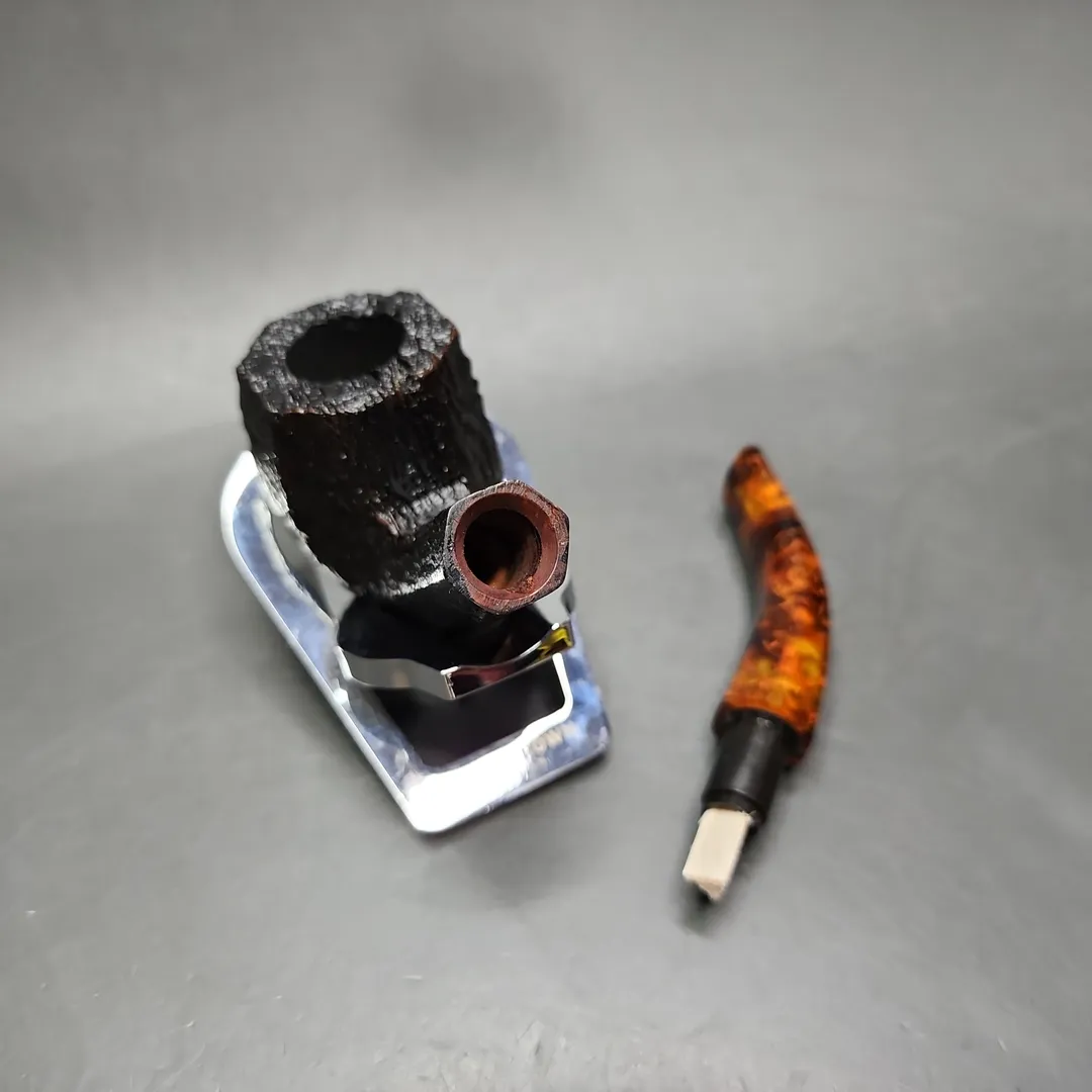 You won’t find the pipes of Savinelli’s Ottagono series on any of the make’s shape charts. That’s because the designs are both unique and very limited in production. These seldom-produced pipes are all paneled variations on classic shapes, featuring an elegant, black sandblasted finish that is made all the more elegant in being paired with an amber-toned Lucite stem.