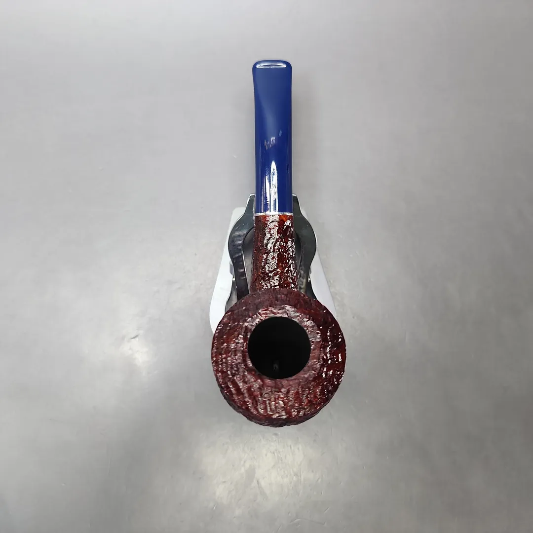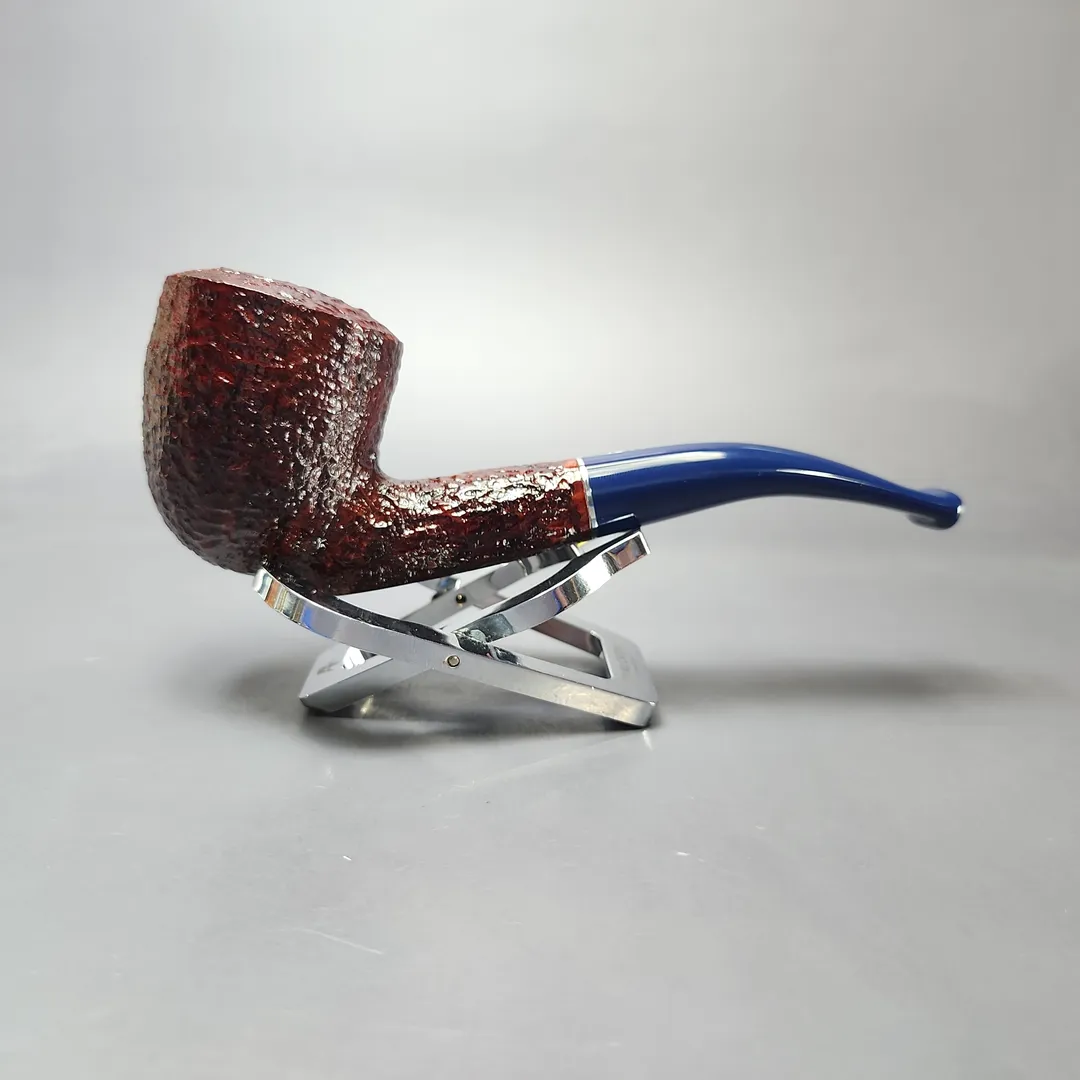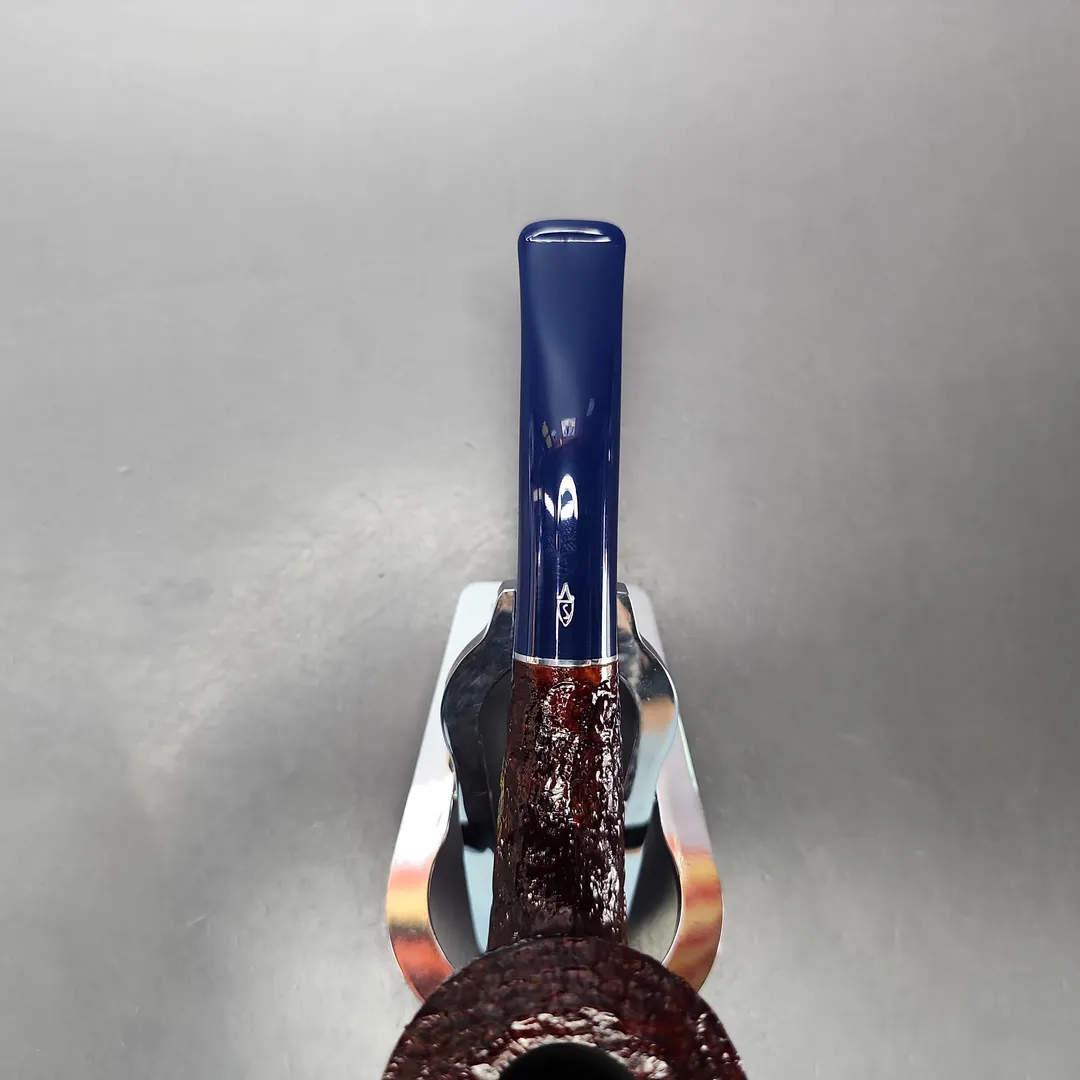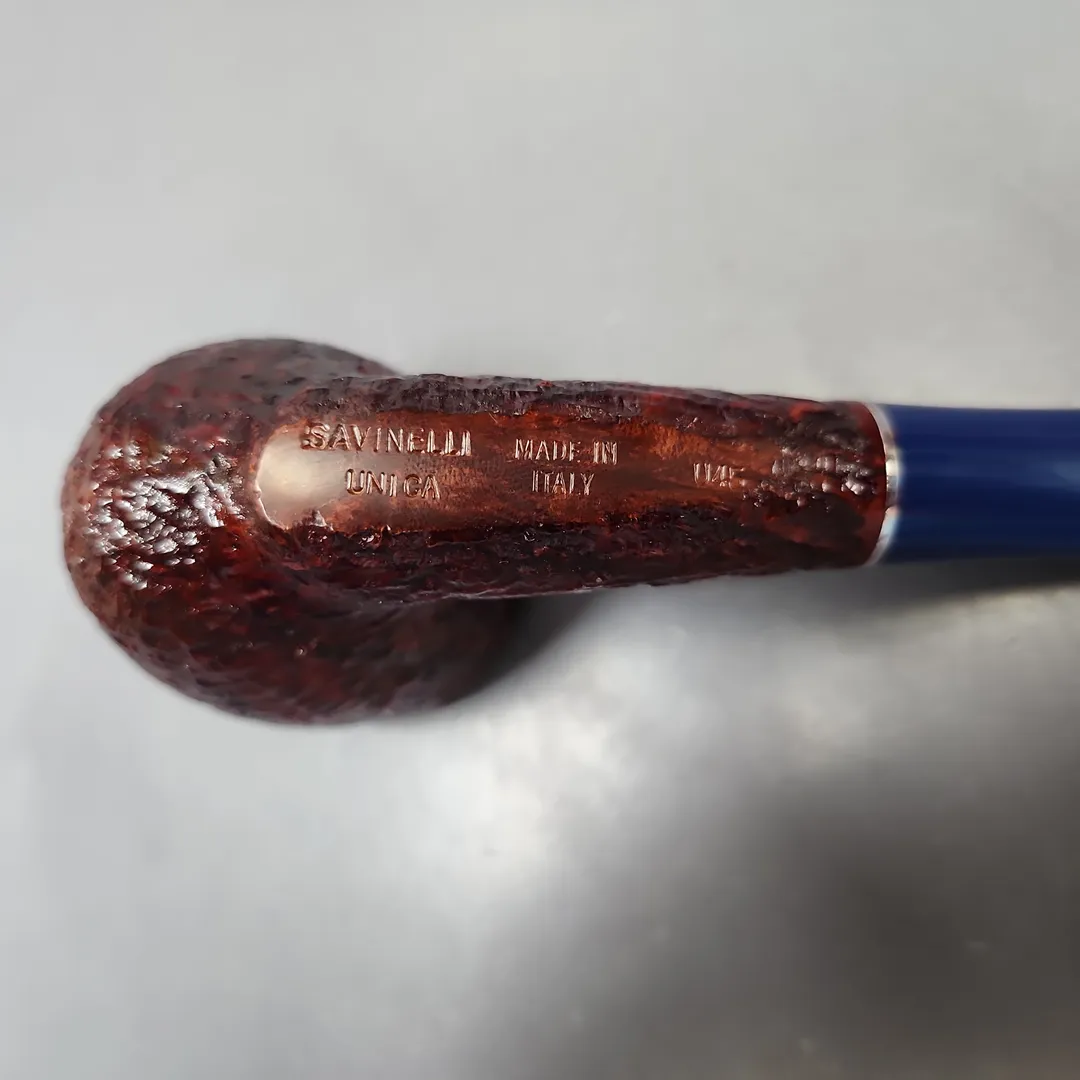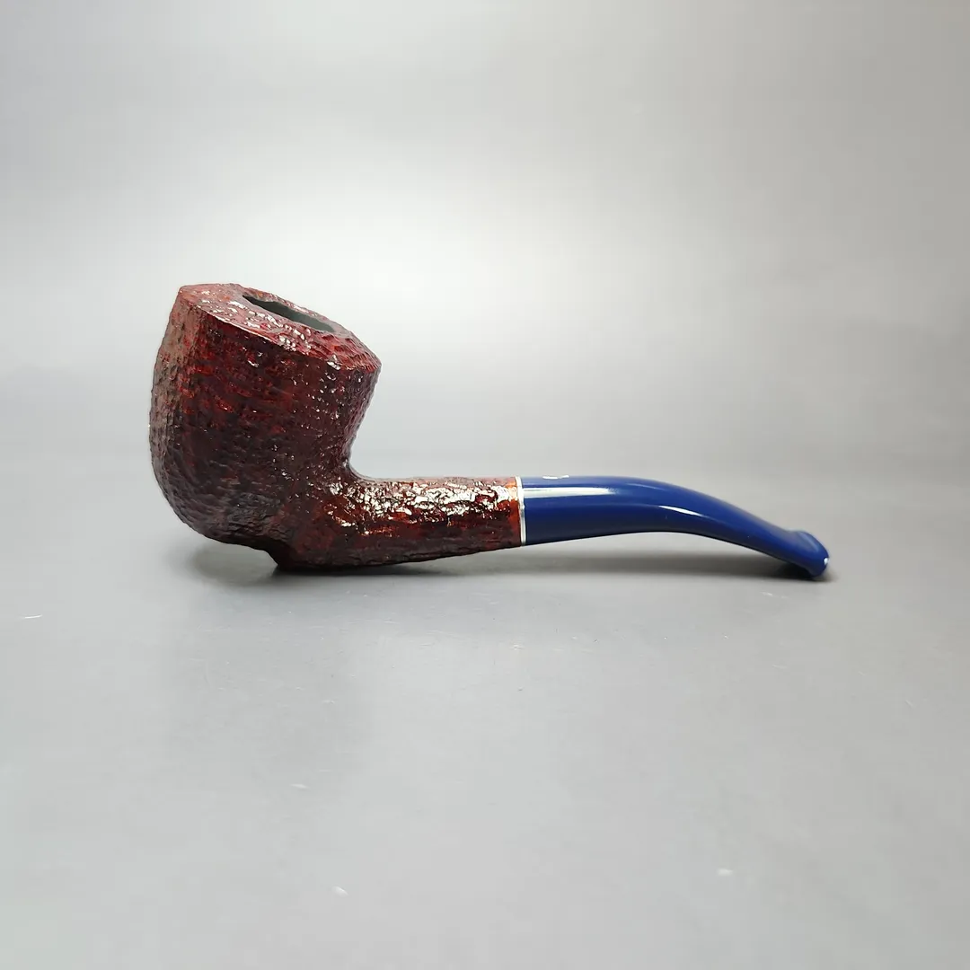 Savinelli’s Unica has been a recent and quite unique series. It marked the first time in a long while that the Italian make has produced completely new shapes, along with novel finishes to complement them. So far, the pipes have been a special release, with limited quantities available. As can be seen here, U45 is by far one of the most unorthodox and daring shapes in the series, one that would be more expected from an artisan pipe than a factory make. Nominally a “bent pot,” it is not an easy form to pin down on a classical shape chart, instead being closer to something one might find among the Danish and Italian freehand scene, such as those of the Autograph workshop. Exclusive to the Unica series, it is dressed in a light, burgundy rustication and paired with a custom-cast cobalt blue acrylic stem.