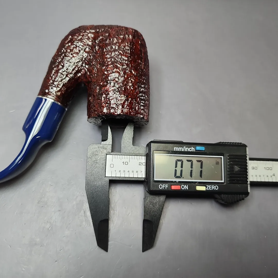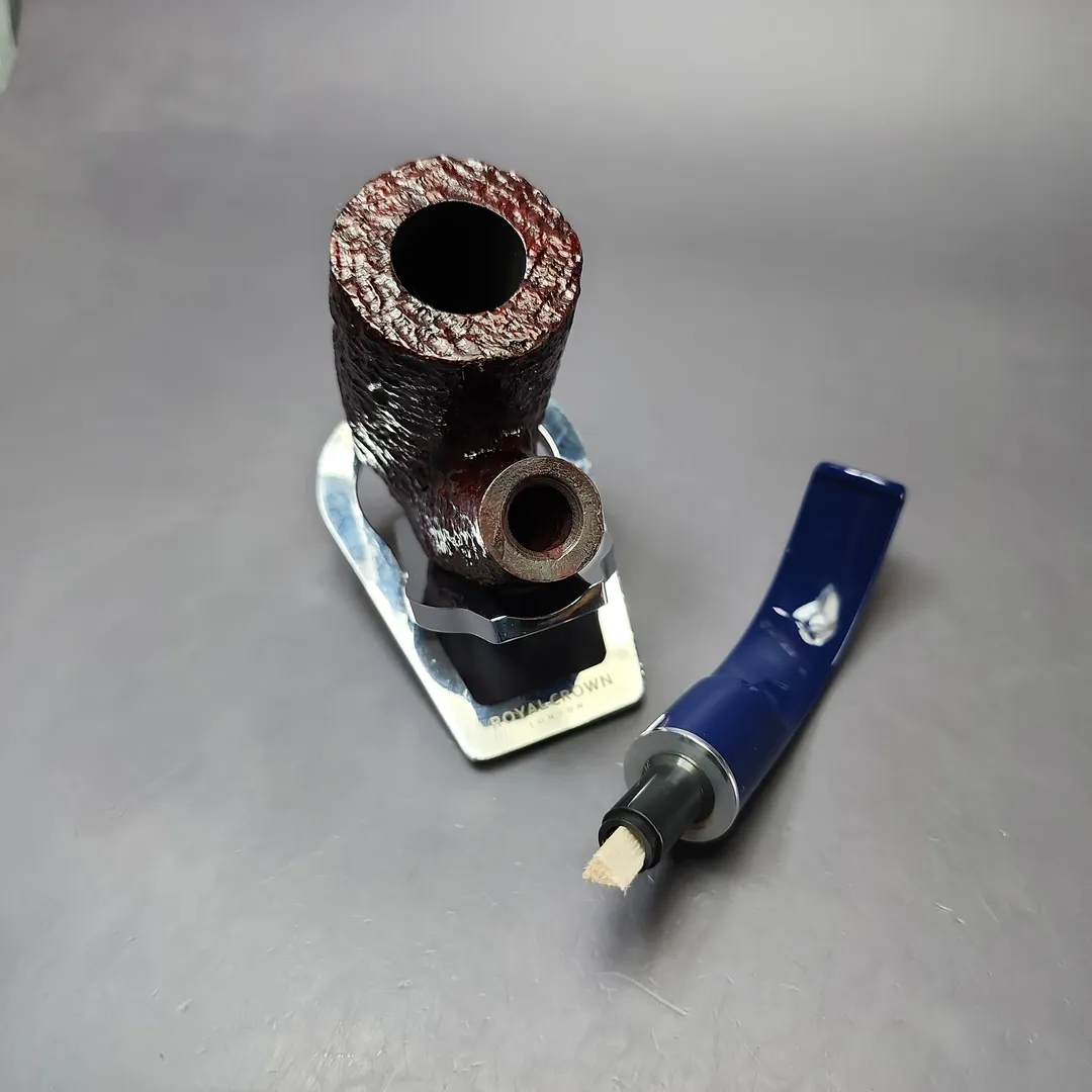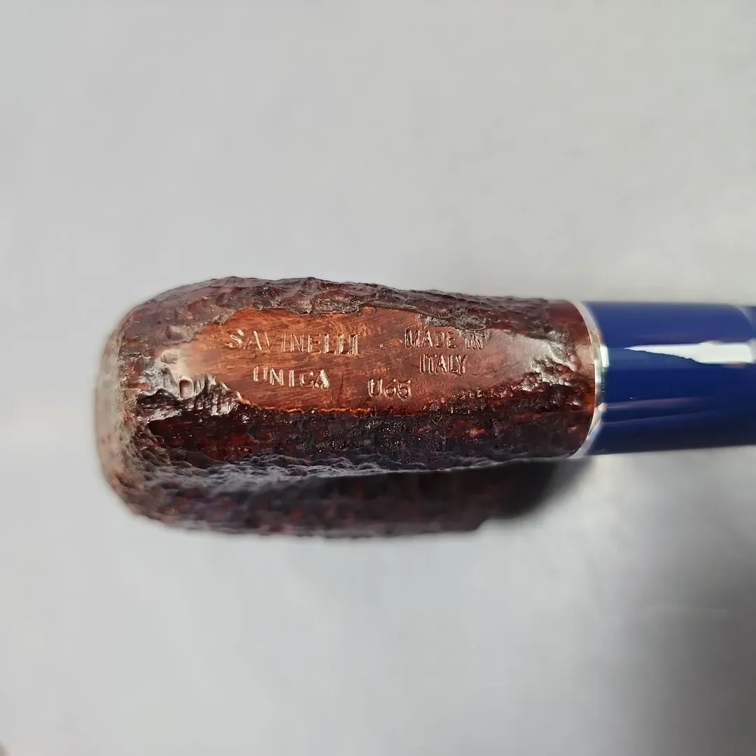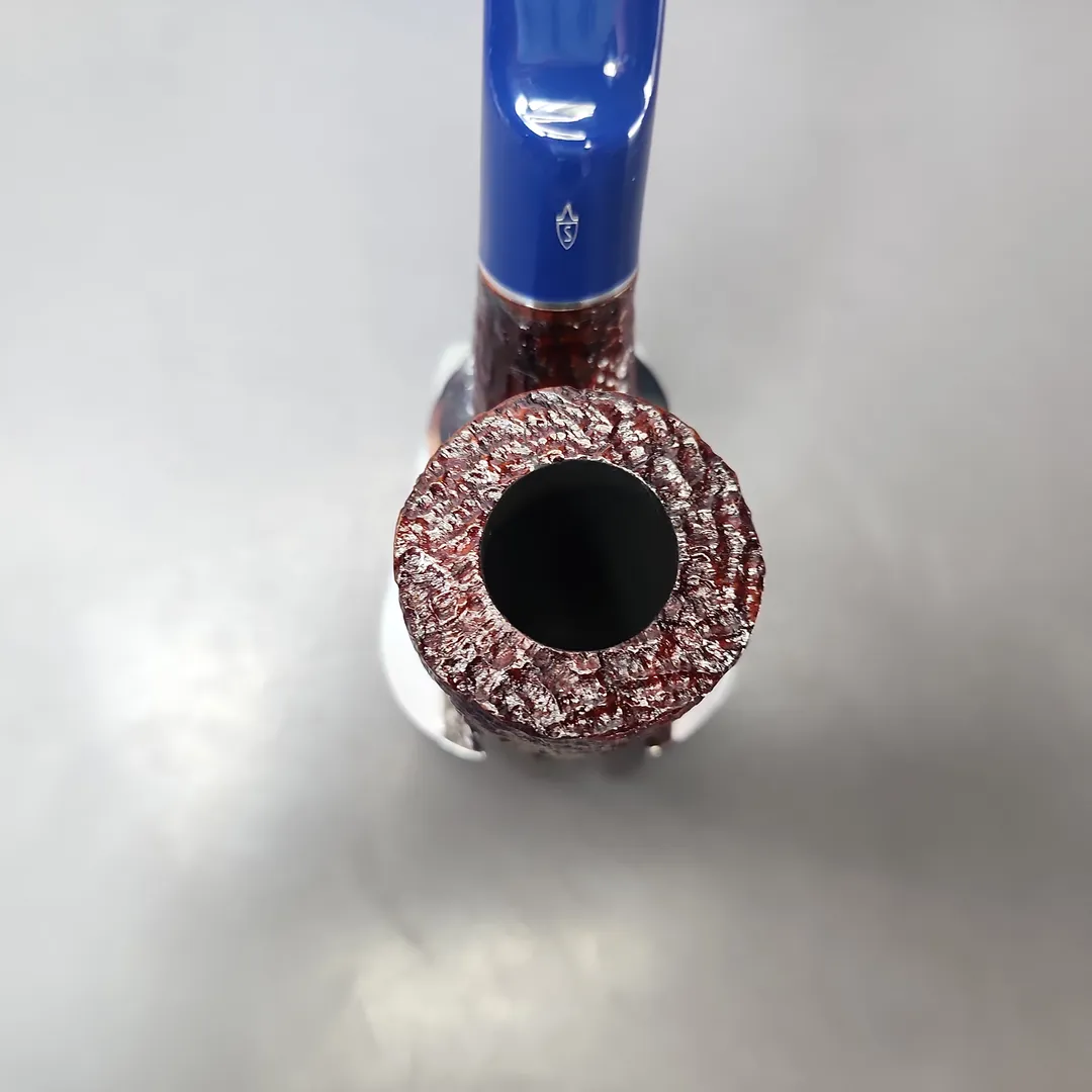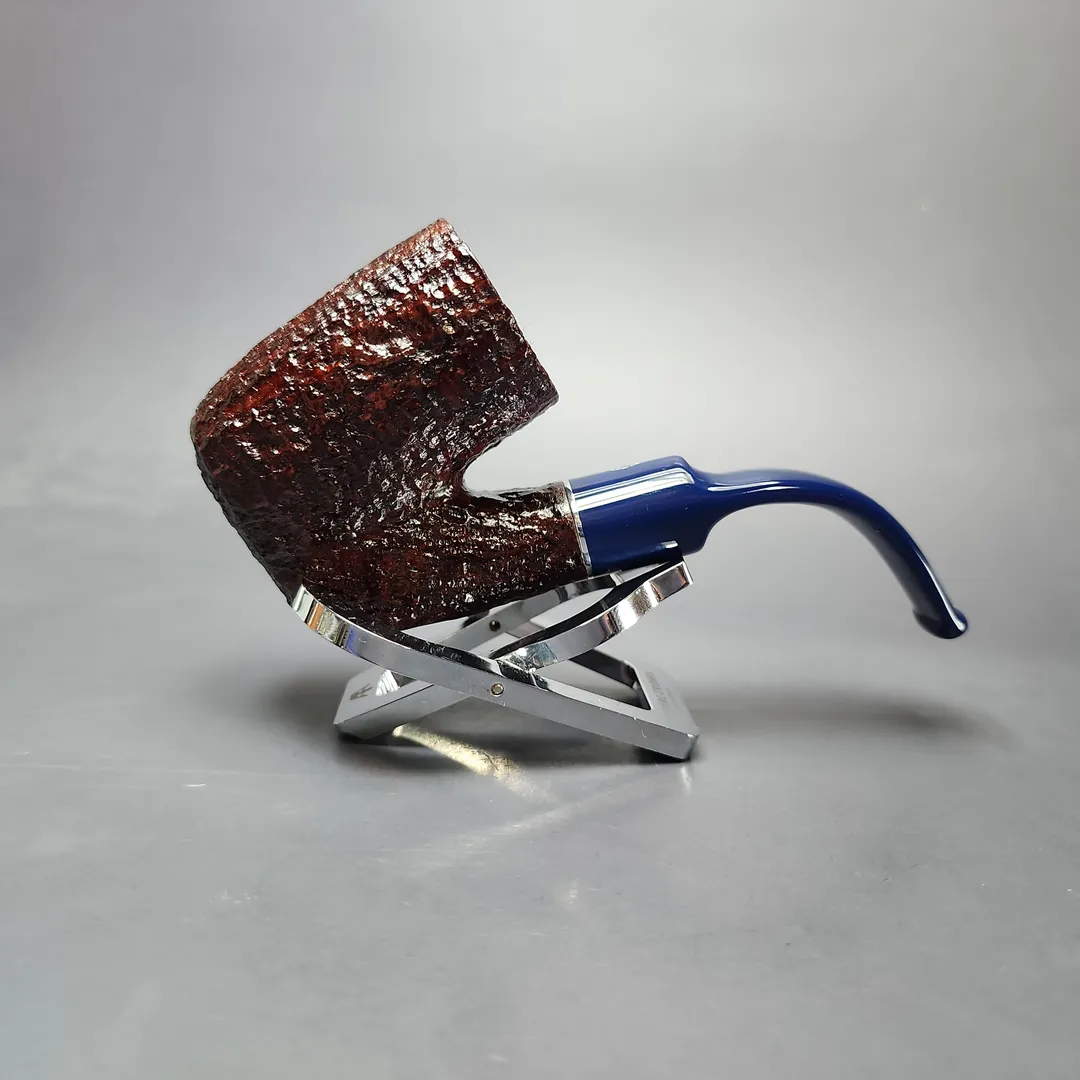 Savinelli’s Unica has been a recent and quite unique series. It marked the first time in a long while that the Italian make has produced completely new shapes, along with novel finishes to complement them. So far, the pipes have been a special release, with limited quantities available. The U65, for example, is an especially stout and sturdy take on the traditional Oom Paul, with a thick-walled, stacked chamber far exceeding Savinelli’s other renditions of the shape. Exclusive to the Unica series, it is dressed in a light, burgundy rustication and paired with a custom-cast cobalt blue acrylic stem.