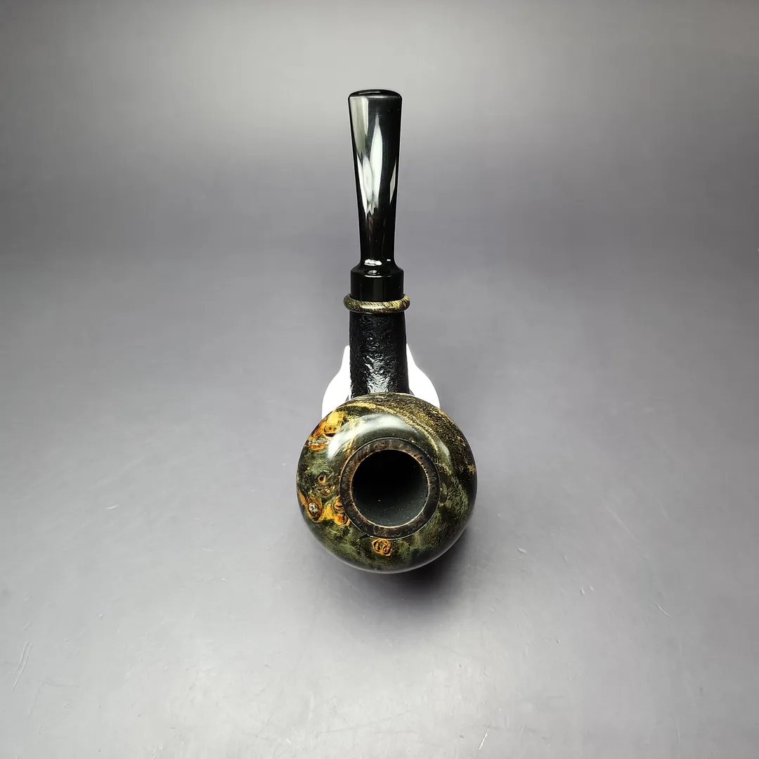 Sebastian Heck Sandblasted Calabash w/ Stabilized Poplar Burl Handmade Briar Pipe, New