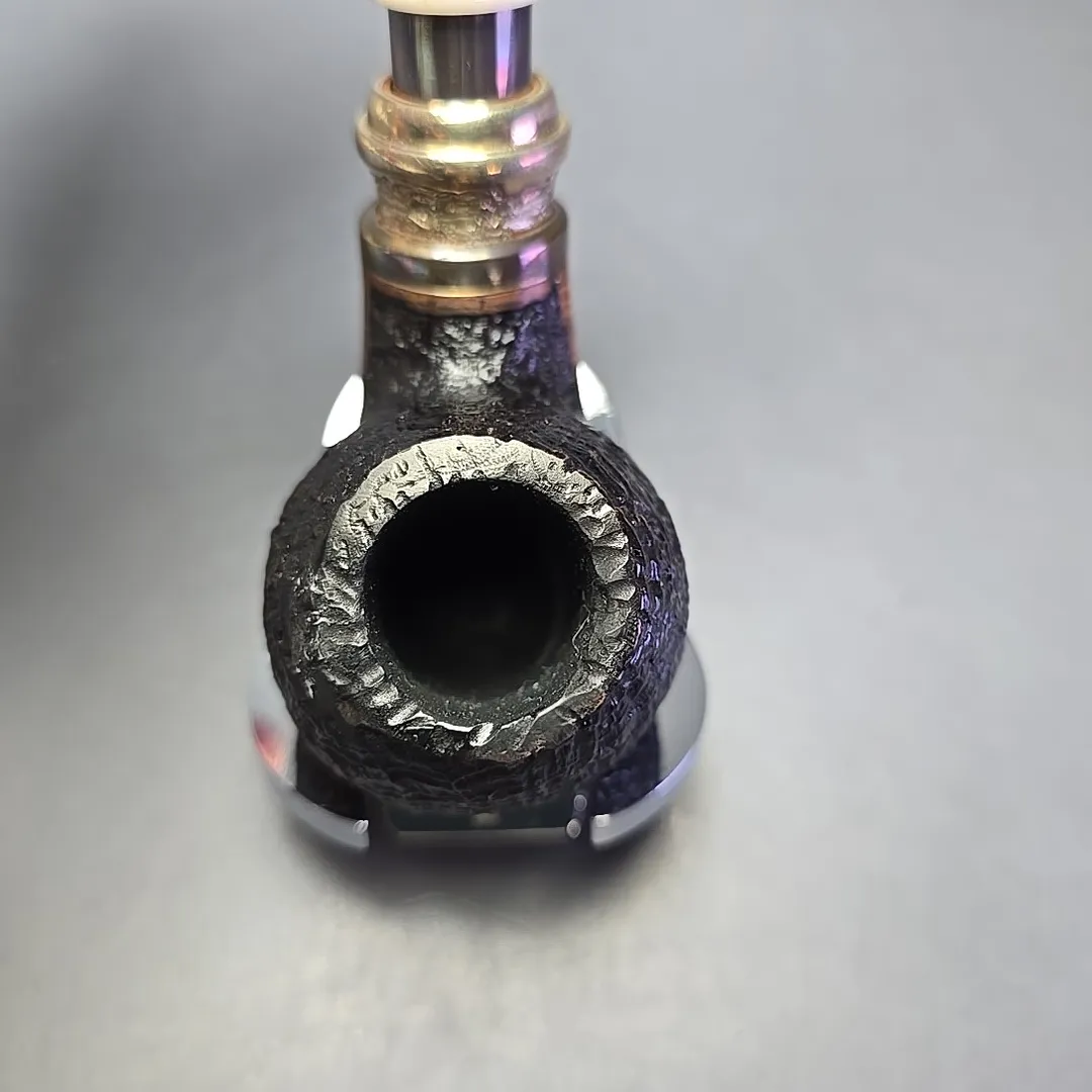In keeping with their Renaissance aesthetic, the Ser Jacopo workshop uses Latin, or Latin-derived, terms for series or specific parts of their pipes. Sometimes these terms are quite literal; for example, Albus et Niger is Latin for “White and Black,” referring to a pipe’s two-tone color palette. At other times, the terms are simply elegant and unique ways of referring to common elements in Ser Jacopo’s design portfolio. The “Pulchra,” like the “Melolontha” and the “Delecta” or is Ser Jacopo’s designation for a type of sterling silver mount. In this case, it refers to faux spigots with a flared section at the end of the mount, creating a sense of seamlessness and symmetry. Taken together, it makes for an especially beautiful design, and if you’re looking for a dress pipe, it doesn’t get much more refined than this.