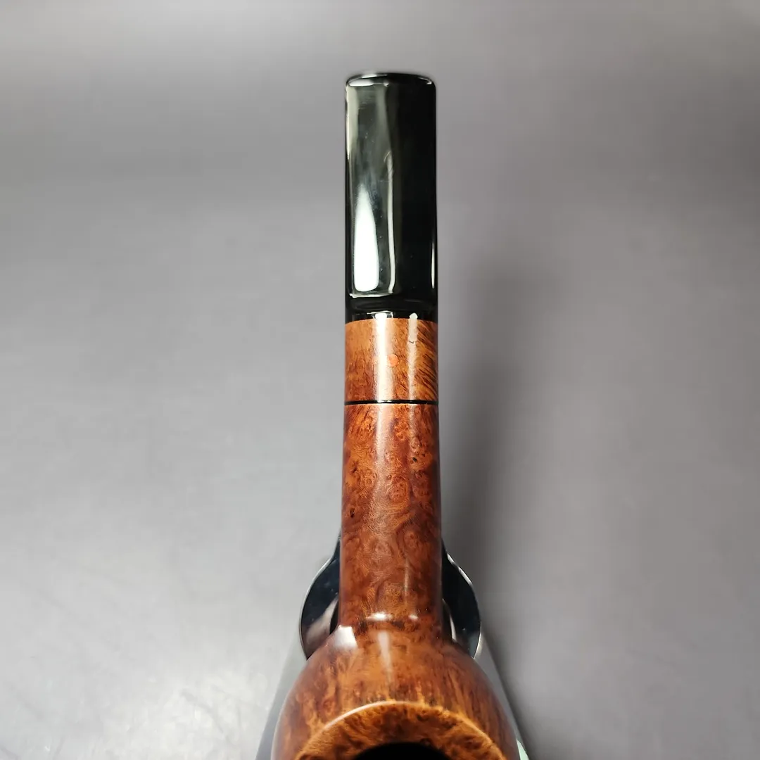 When Ser Jacopo was founded in the early 1980s, the logo Giancarlo Guidi and Bruto Sordini chose to use for their mouthpieces was a dot inlay of red sea coral within a silver ring. Unfortunately, this did not last for long. Another Italian workshop sent Ser Jacopo a cease and desist letter accusing the latter of trademark infringement (not unlike the Dunhill vs Sasieni story eight decades prior), which resulted in Guidi and Sordini removing the silver ring, leaving the red coral dot as a compromise. This also, unfortunately, was short-lived as, in the early 1990s, recommendations and regulations were introduced to protect the species of coral Ser Jacopo used (red coral was also widely used in jewelry and was, furthermore, severely threatened by dredge fishing). So, Ser Jacopo switched out the logo again, replacing the red coral with red plexiglass. In 1997, Guidi and Sordini decided to switch the logo again, adopting the silver “J” for main-brand Ser Jacopo pipes and keeping the red plexiglass dot for sub-brands (these sub brands are also not stamped with Ser Jacopo’s Latin mantra, “Per Aspera Ad Astra“). A close inspection of this one shows it to be red coral (a slight misnomer, as it often closer to orange, or salmon). So, it is certainly pre-1997, One thing I’ve not seen Ser Jacopo historians and enthusiasts do is examine exactly when regulations came into effect protecting red coral and other marine life in Italy. Sardinia, for example, a major location for red coral harvesting, introduced legislation restricting this practice in 1989. In 1994, the European Union (of which Italy was, and currently still is, a member state) implemented similar protective legislation. I would, therefore, estimate that coral dot Ser Jacopos are pre-1994, and perhaps even pre-1989 as far as dating goes. I’ll put this one down as pre-1994 until I’ve been able to do more research on the matter (if you made it this far, thanks for reading!)
