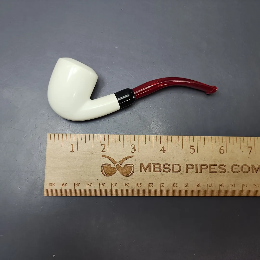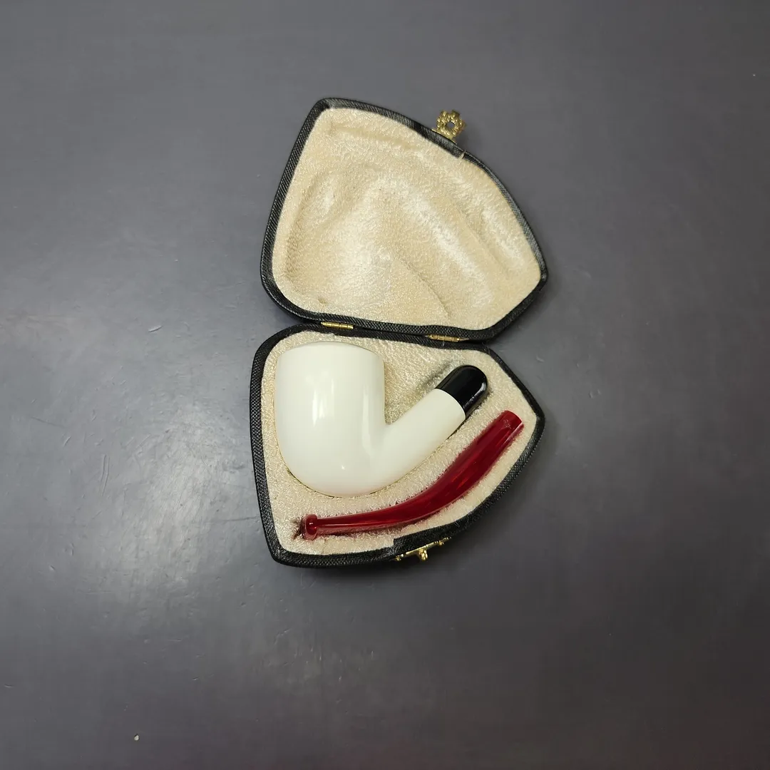 Smooth Bent Billiard Estate Block Meerschaum Pipe w/ Case, Unsmoked