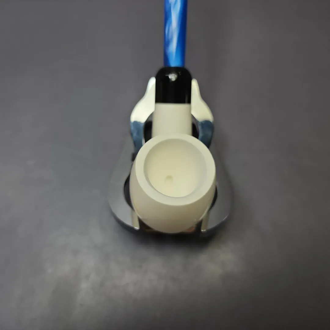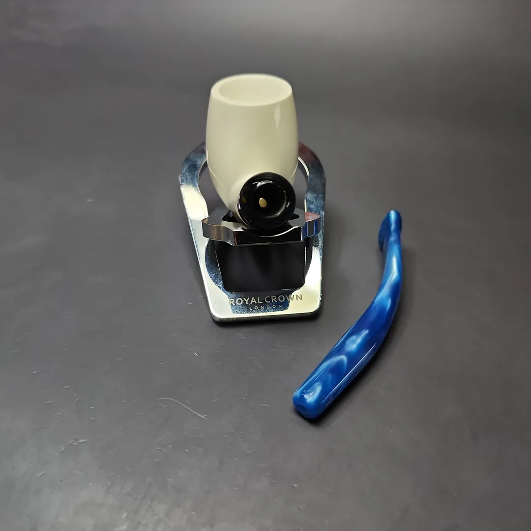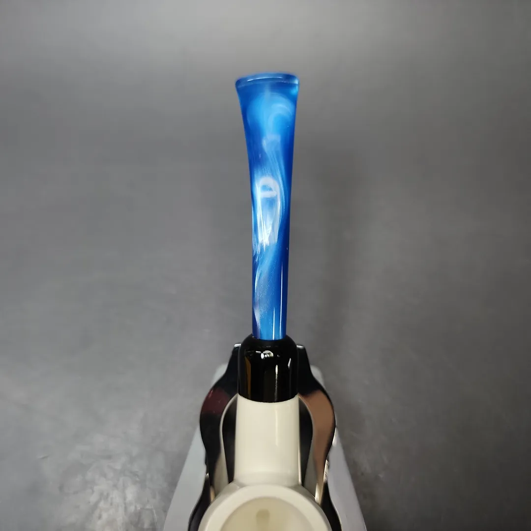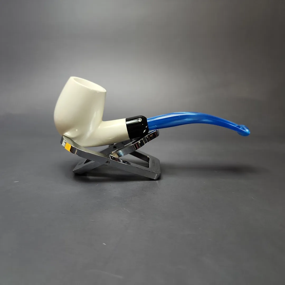 Smooth Bent Billiard w/ Blue Stem & Case Estate Block Meerschaum Pipe, Unsmoked