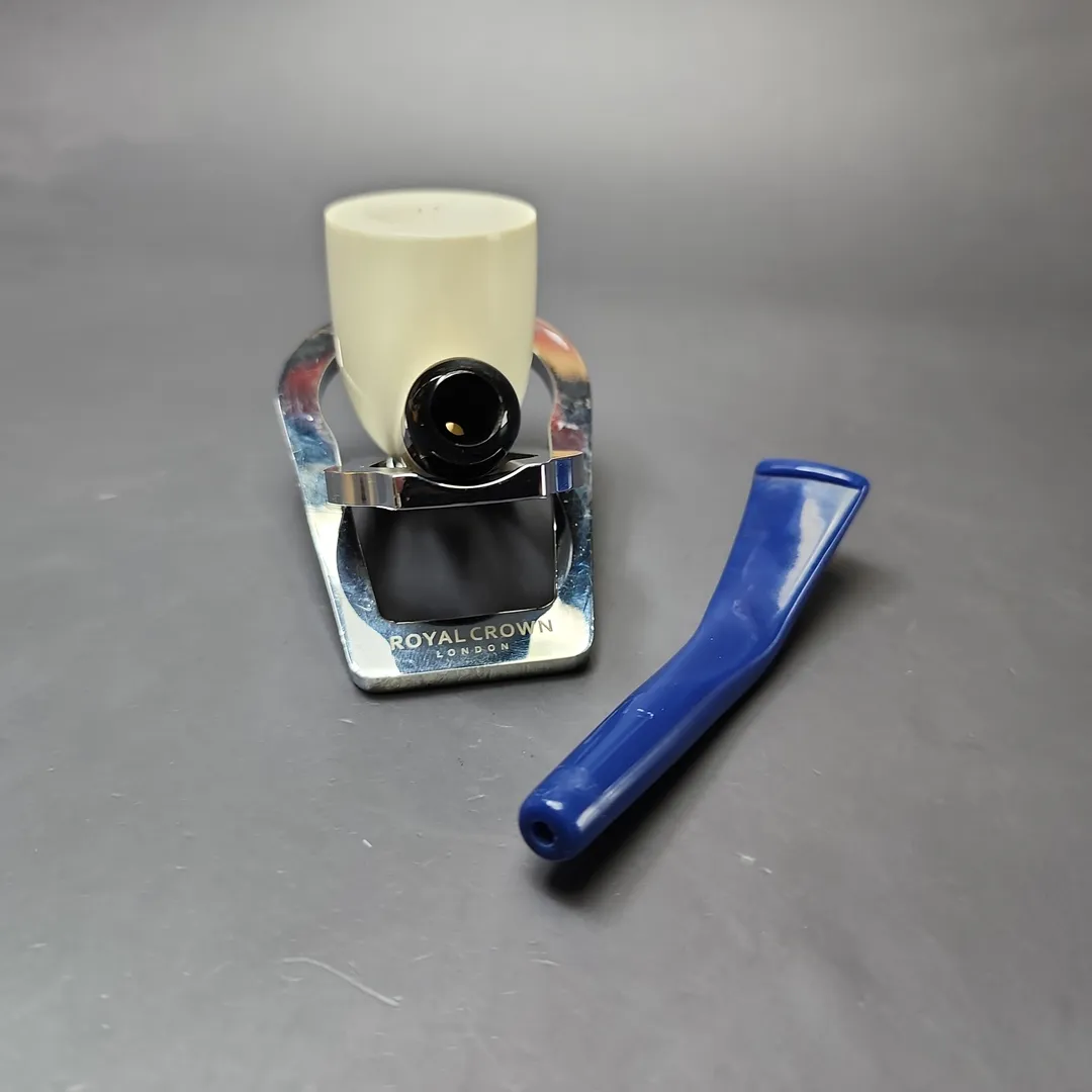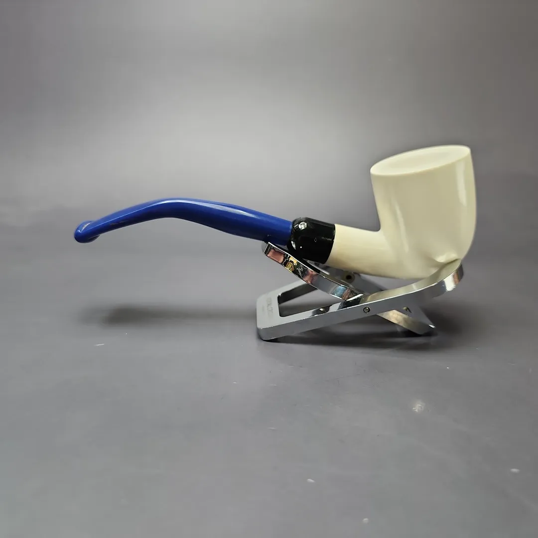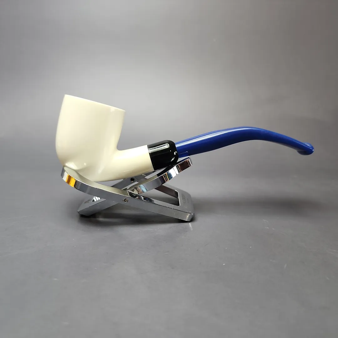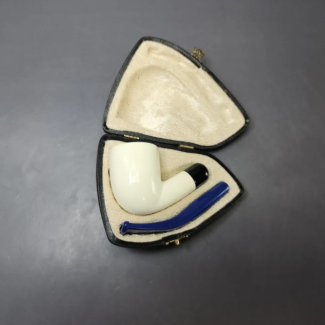 Smooth Bent Dublin w/ Blue Stem & Case Estate Block Meerschaum Pipe, Unsmoked
