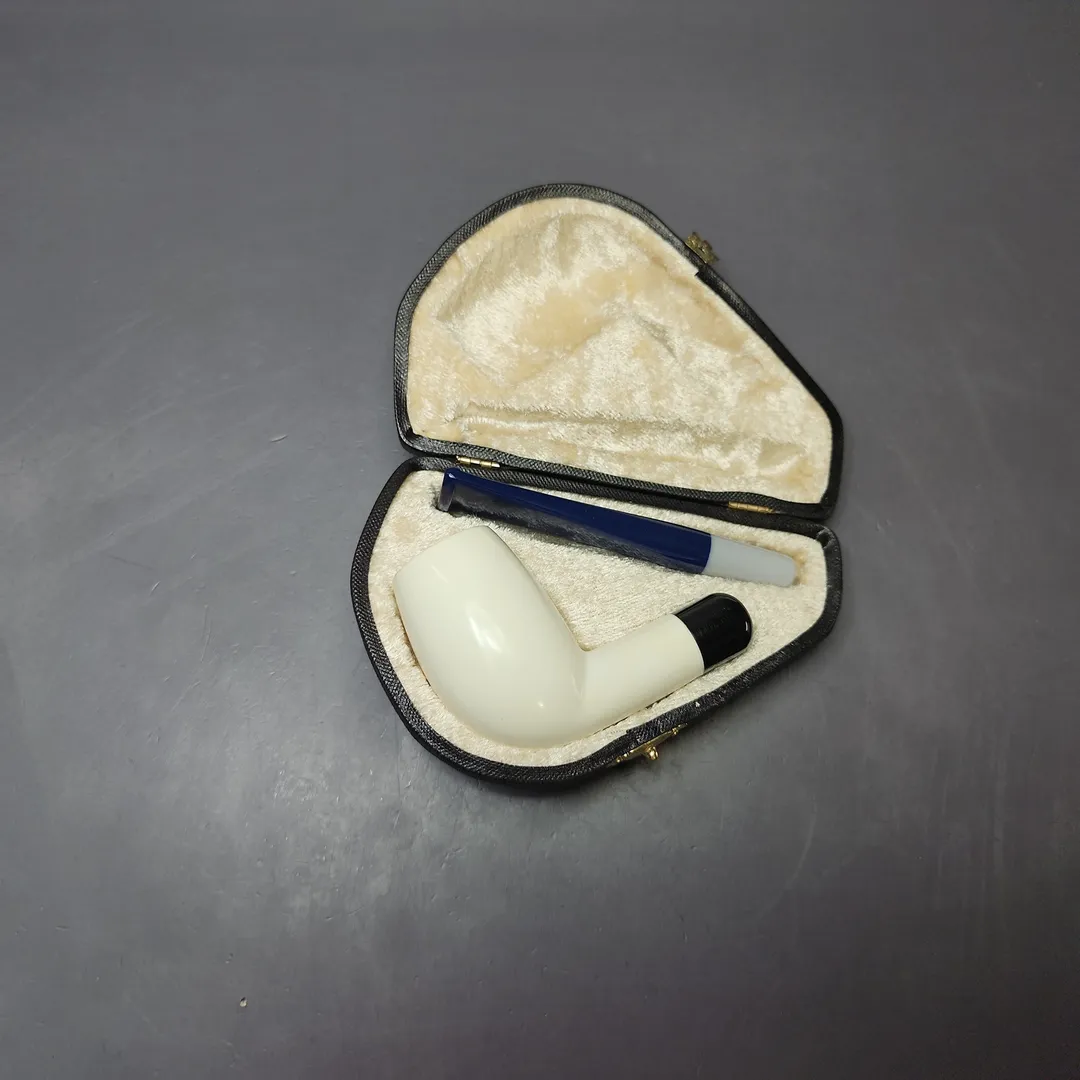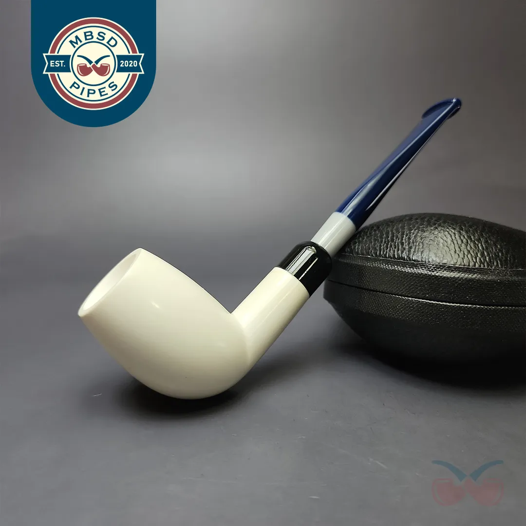 Smooth Billiard w/ Blue Stem & Case Estate Block Meerschaum Pipe, Unsmoked