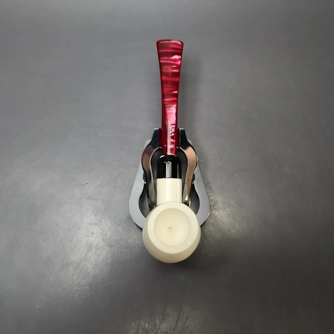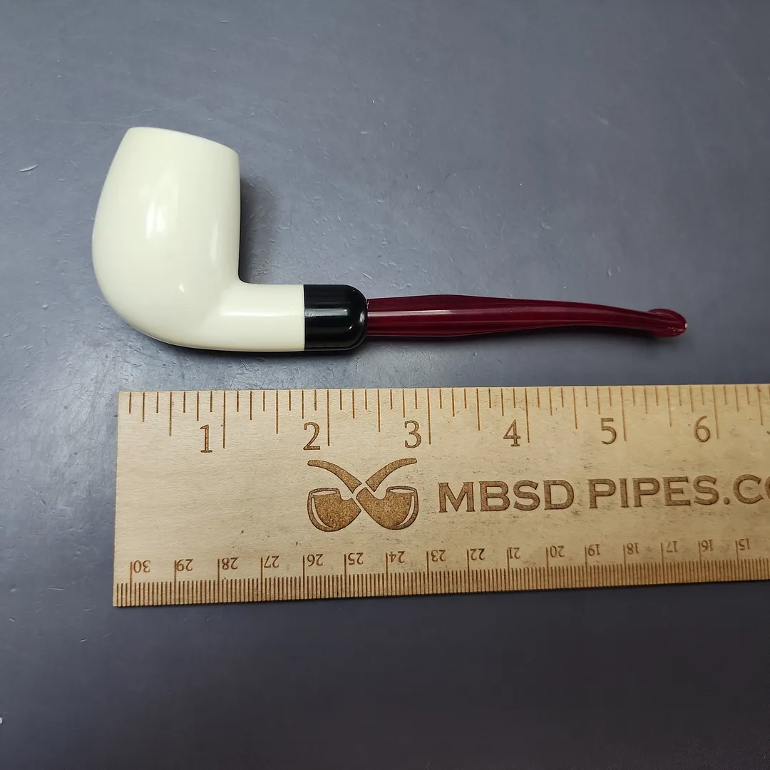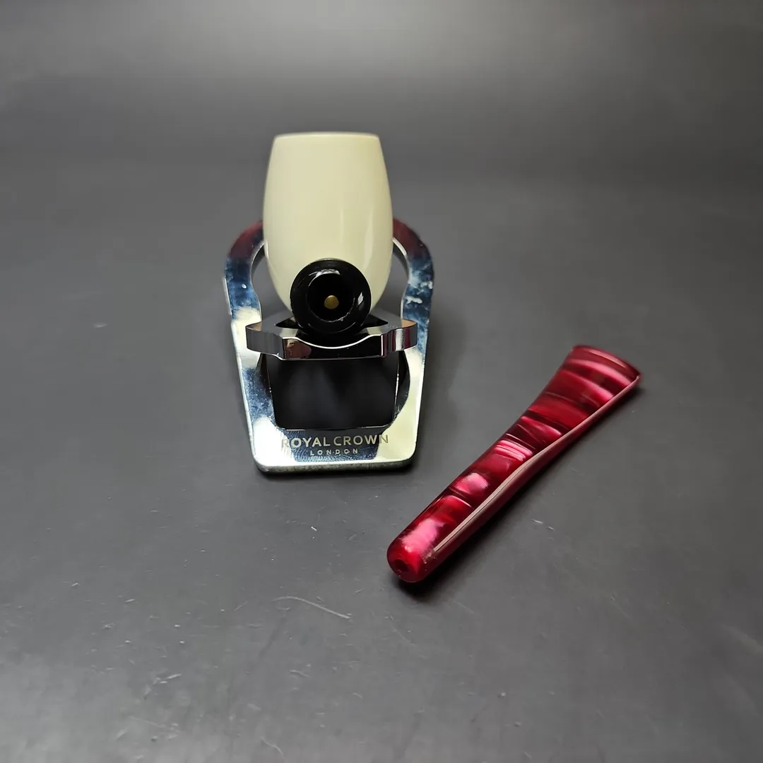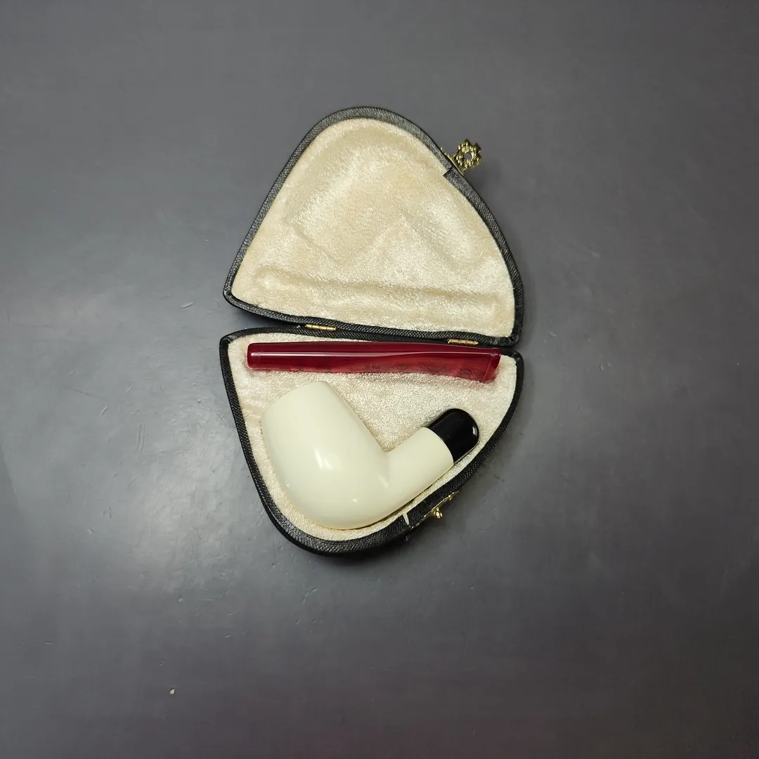 Smooth Egg w/ Red Stem & Case Estate Block Meerschaum Pipe, Unsmoked