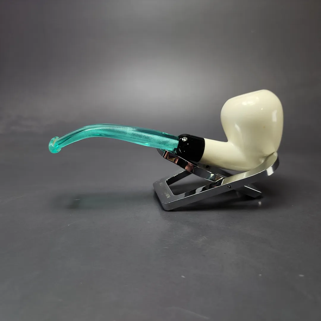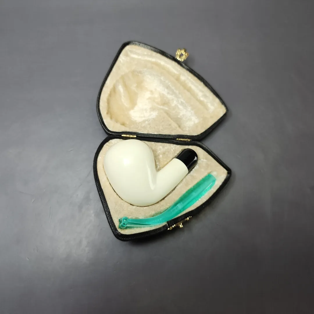 Smooth Pear w/ Turquoise stem & Case Estate Block Meerschaum Pipe, Unsmoked