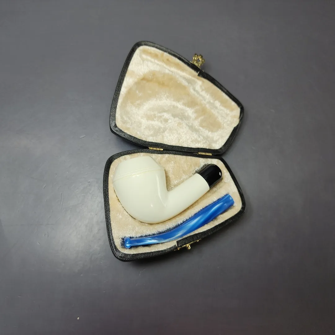 Smooth Rhodesian Estate Block Meerschaum Pipe w/ Case, Unsmoked