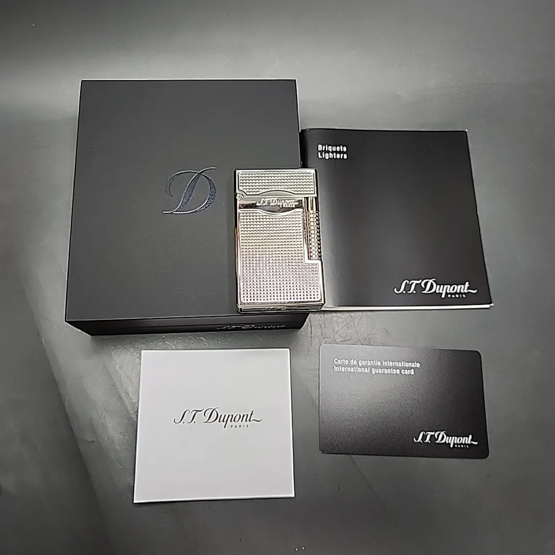 This ST Dupont came to us through a fellow pipe smoker who wanted to sell some of the stuff he no longer used. The customer said when he bought this lighter he filled it with fluid, played with it a few times and put it away to never be used again. As photos show, the condition is pristine – but used.