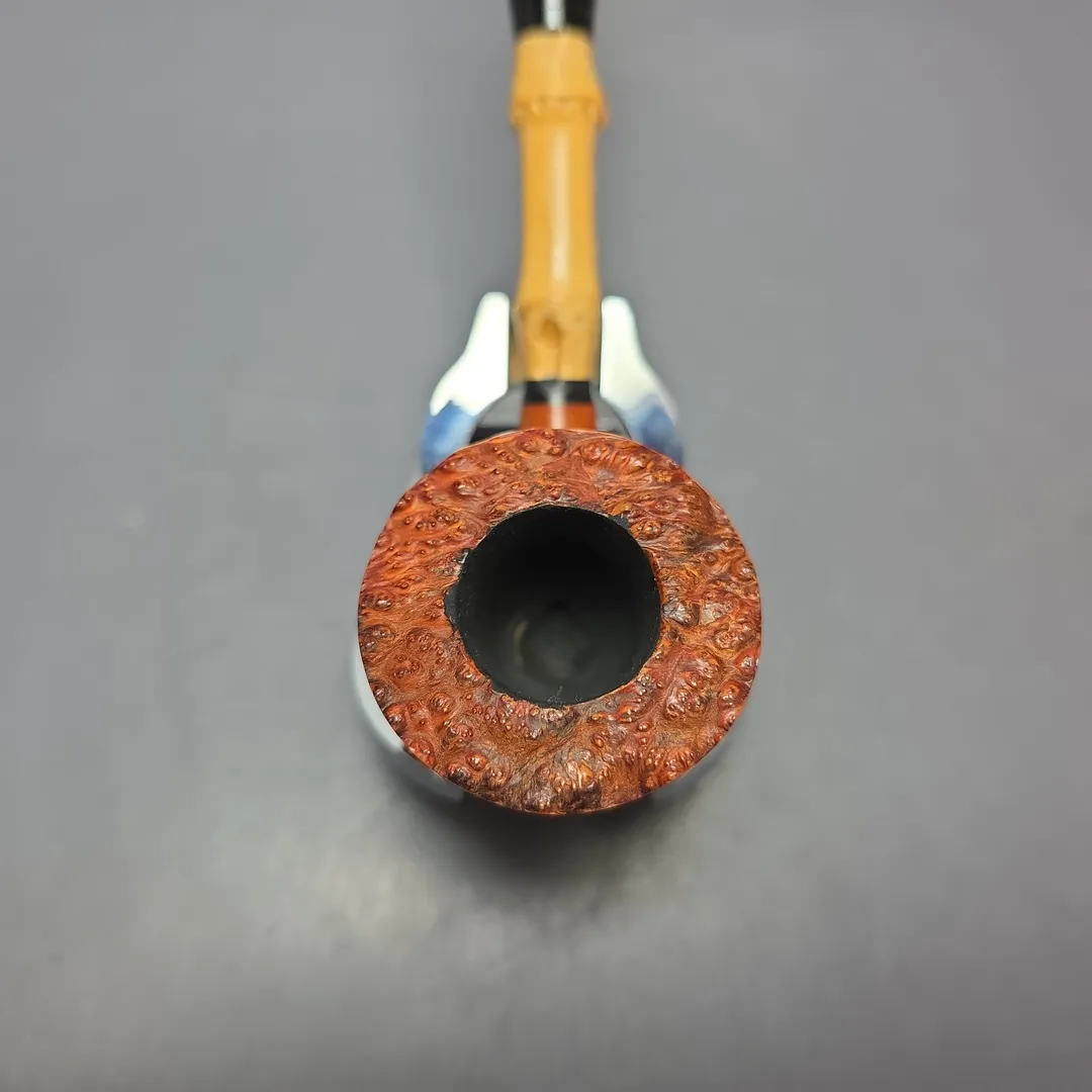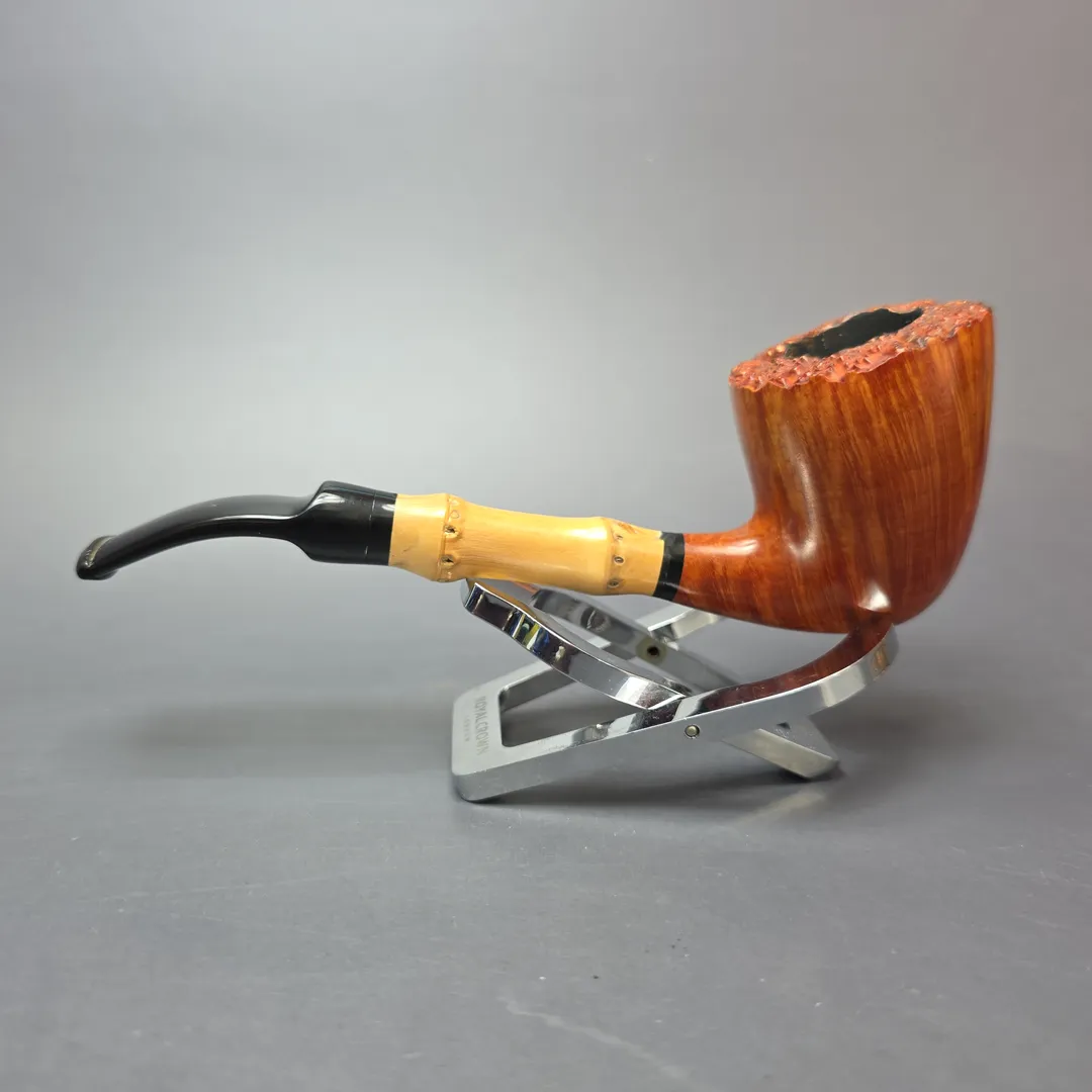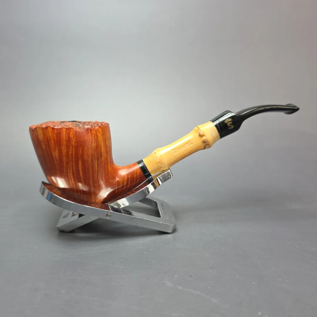 Stanwell has a long and interesting history with bamboo. Like Dunhill and Kaywoodie, Stanwell began using pieces of bamboo as shank extensions not long after the Second World War, during a time when briar was scarce and bamboo was found to be a great material for saving on the amount of briar used per pipe. Stanwell’s 1950s “Bamboos” incorporated the material into a number of designs and, as one might imagine, it did so in a distinctly “Danish” (or, rather, “Scandinavian”) way, as this was the same decade that the company forged a partnership with Sixten Ivarsson, who designed many Stanwell shapes in that period. Similarly to its European and American counterparts, Stanwell continued to use bamboo long after the post-war briar shortage waned, as pipe smokers were particularly receptive to bamboo-shanked compositions. As Stanwell’s catalog shapes transformed in the succeeding decades, so too did its Bamboo offerings; the narrow, stacked Bamboo Nefertiti renditions of the 1950s gave way to the more plump, Danish apple and egg Bamboos of the 1960s, and so on. In the 1980s and 1990s, however, Stanwell’s Bamboo line was given a slightly more “freeform” touch. In the past, Stanwell’s Bamboo models had been based on pre-existing catalog shapes, albeit with some flexibility to accommodate that addition, and while the Bamboos of the 1980s and early 1990s did not abandon catalog shapes entirely, their manufacture involved significantly more freedom on the part of person making them. This way, the person carving Stanwell’s Bamboo pipes could make the best use possible of a given briar block and bamboo rod, rather than being limited to merely reproducing as close as possible its corresponding catalog shape. I have read that this took place in the 1970s and that it was a “Mr Larsen” that made these more unique Bamboo pipes. Some claim that this Larsen fellow must have been Jørgen Larsen, who also made pipes for Peter Stokkebye, as well as under the Jørgen L moniker. I have wondered, however, if this is a mistake, as Jørgen Larsen worked for Stanwell during the 1960s, not the 1970s. Furthermore, if one reads the autobiographical remarks of the Danish artisan Jørn Larsen, one finds him recounting how he made “semi-manufactured articles for Stanwell”, which included fittings of “silver rings, bamboo and horn.” By Jørn Larsen’s account, however, this took place after an informal apprenticeship of sorts with Jess Chonowitsch in the mid-1980s. Thus, my own theory is that the more unique, slightly freeform Stanwell Bamboos were of Jørn Larsen’s making in the 1980s and possibly early 1990s.