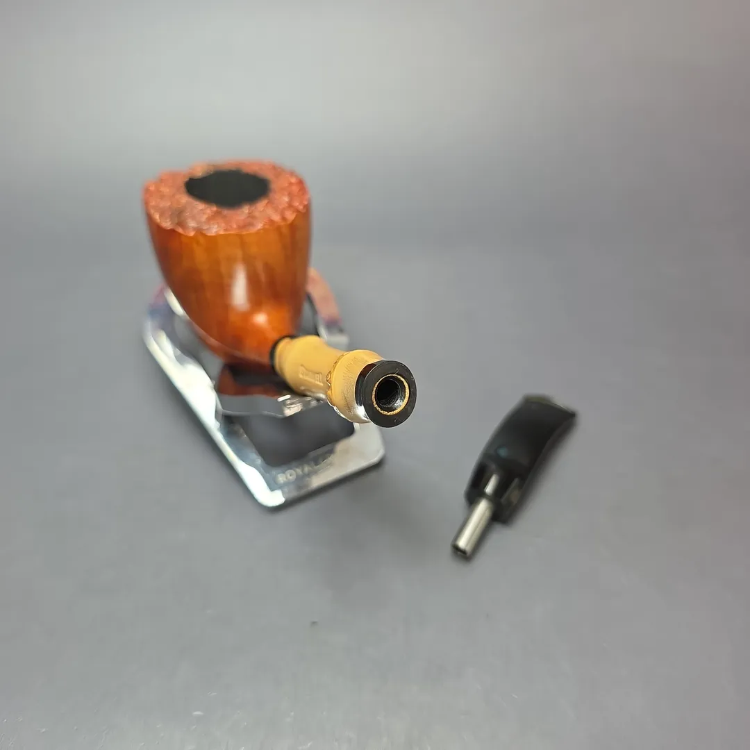 This Stanwell looks to be one such pipe. It is a gorgeous Dublin rendition—of that, there can be no doubt—and it looks to be loosely based on either the shape “62” or “63,” both of which were designed by Sixten Ivarsson in the 1970s. One can also see, however, that whoever carved this one took some liberties with the proportions, especially those of the shank, so as to accommodate the proportions of the bamboo itself. The gold, crowned “S” stem logo would furthermore indicate it as being mid-1980s to early-1990s, as that was a period when—if I remember correctly—Stanwell used a slogan to the effect of “you will recognize us by our golden ‘S’.”