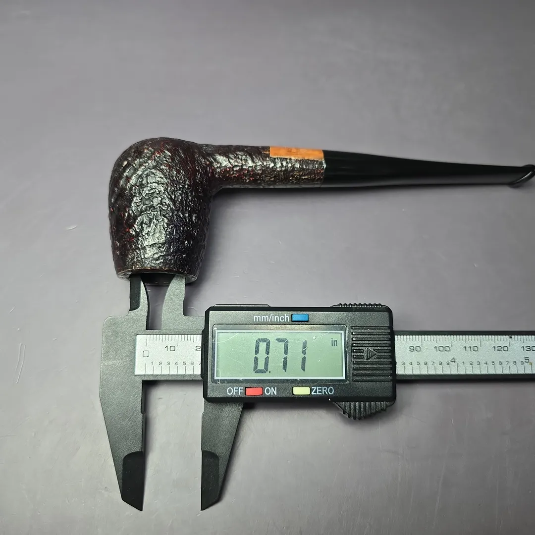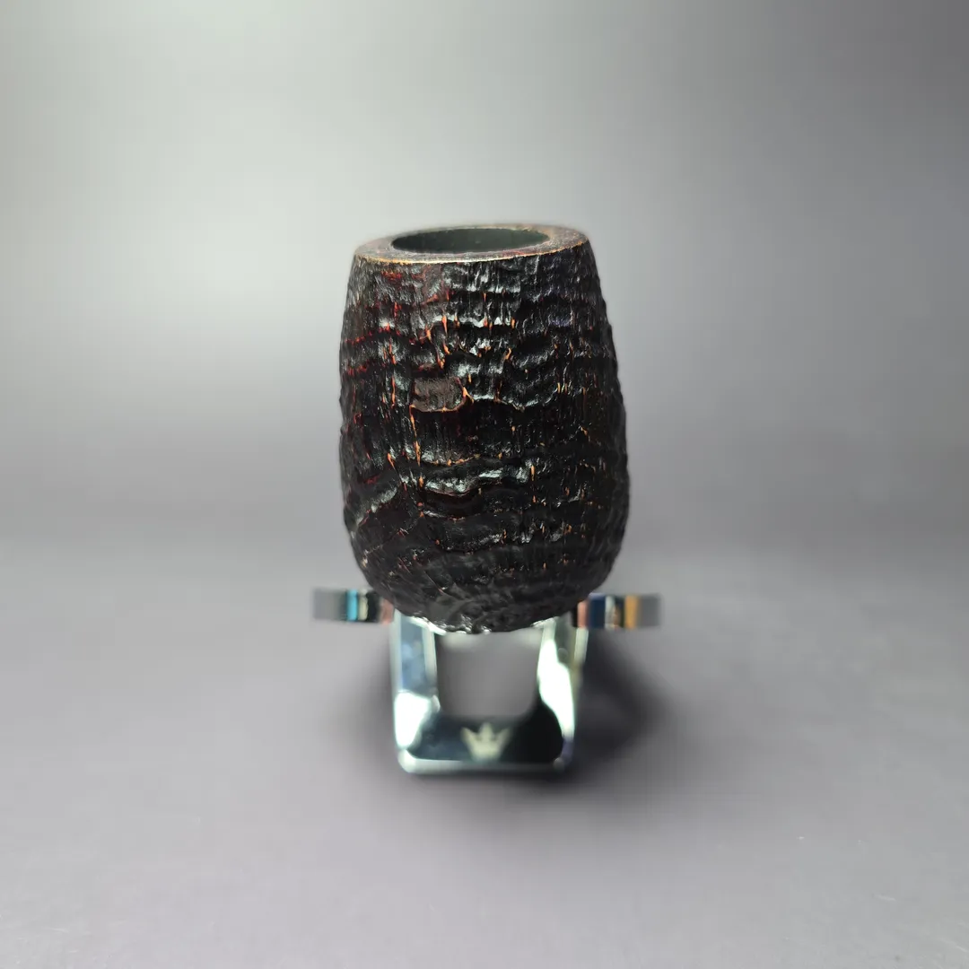 It has been a tradition for many years now for Stanwell to provide pipes for the many slow-smoking competitions that take place across Denmark. This is why some Stanwells can be found with initials such as “SM,” “RM,” or, as with this one, “DM.” The “M” stands for “mesterskab,” which is Danish for something like “championship”; intuitively, the “D” on this one stands for “Danmarks.” This one will have been made for the 2013 Danish national slow smoking championship, and though it isn’t stamped with a shape number, it looks to me to be the shape 142, a kind of “tulip” billiard designed by Jess Chonowitsch several decades ago. It’s a reserved, yet subtly distinctive design, and in this instance works well to show off a great ring grain sandblast.