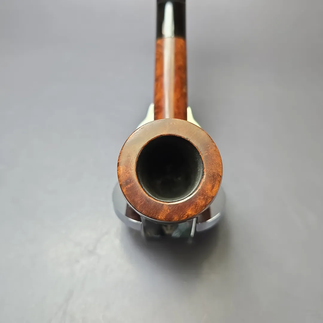 The 81R was one of a number of shapes Stanwell debuted in the 1960s, under the collective name “Giants.” One could compare them to the Dunhill OD series, as the Giants were, like the ODs, a mixture of extra large pipes, and fairly large pipes of unusual (in this case, Danish) design. The 81R was somewhere on the borderline between a saddle billiard and a Lovat, and was indeed a big chunk of briar. It is also one of the shapes in Stanwell’s catalogs of the time that was only available in the premium Hand Made line, presumably due to its exceptional proportions. By the mid-1970s, the 81R had disappeared from Stanwell’s catalogs, however, as the company leaned even further into its signature “Danish design” with many of its classical renditions falling by the wayside. I would estimate this as being a mid-1960s to mid-1970s make (some would argue that the registration number stamp puts it as pre-1970, though as our Guide to Dating Stanwell Pipes demonstrates, this long-held theory is simply not tenable).