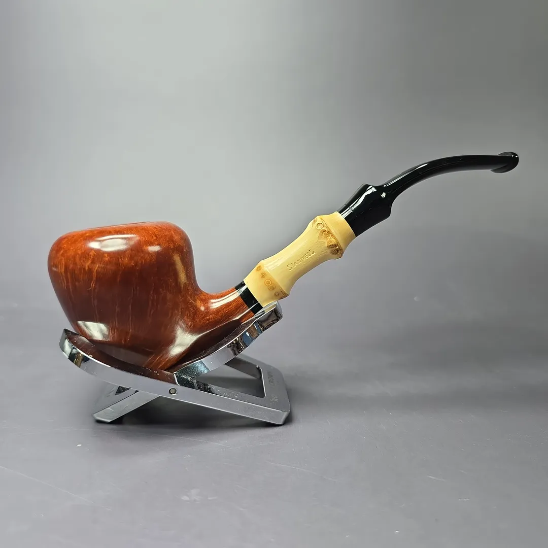 In the years during and following the Second World War, good briar was scarce, and to weather this storm, many pipe companies went about rethinking pipe design altogether. One set of what George Kubler would call “linked solutions” was to simply use less briar per pipe, and one way of doing this was to replace a pipe’s shank with a different material entirely. Bamboo was an especially popular material for this purpose in the Anglophone world, such as in the case of Dunhill or Kaywoodie, and it was also especially popular in Denmark, where the briar shortage had been even more severe. Stanwell began making bamboo-shanked briars during the 1950s, likely under the influence of prominent Scandinavian artisans of the time. Sixten Ivarsson, who collaborated extensively with Stanwell, was very fond of bamboos, as were plenty of other artisans in Denmark and Sweden who weren’t associated with Poul Nielsen’s company, such as Poul Rasmussen, Emil Chonowitsch, and Bo Nordh. As it turned out, bamboo was also very popular with pipe smokers, and would remain a fixture in pipe design long after the post-war briar shortage had abated.