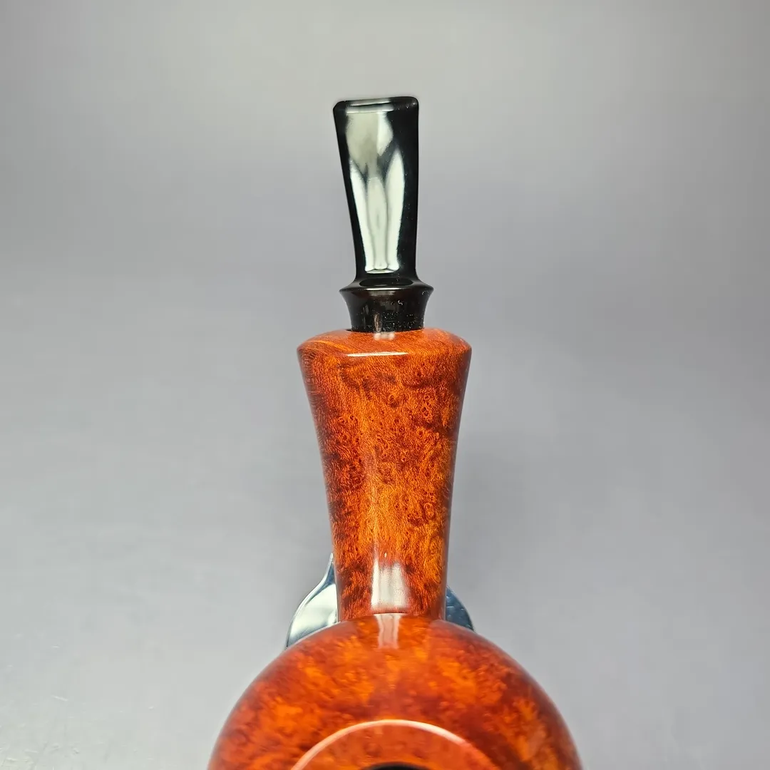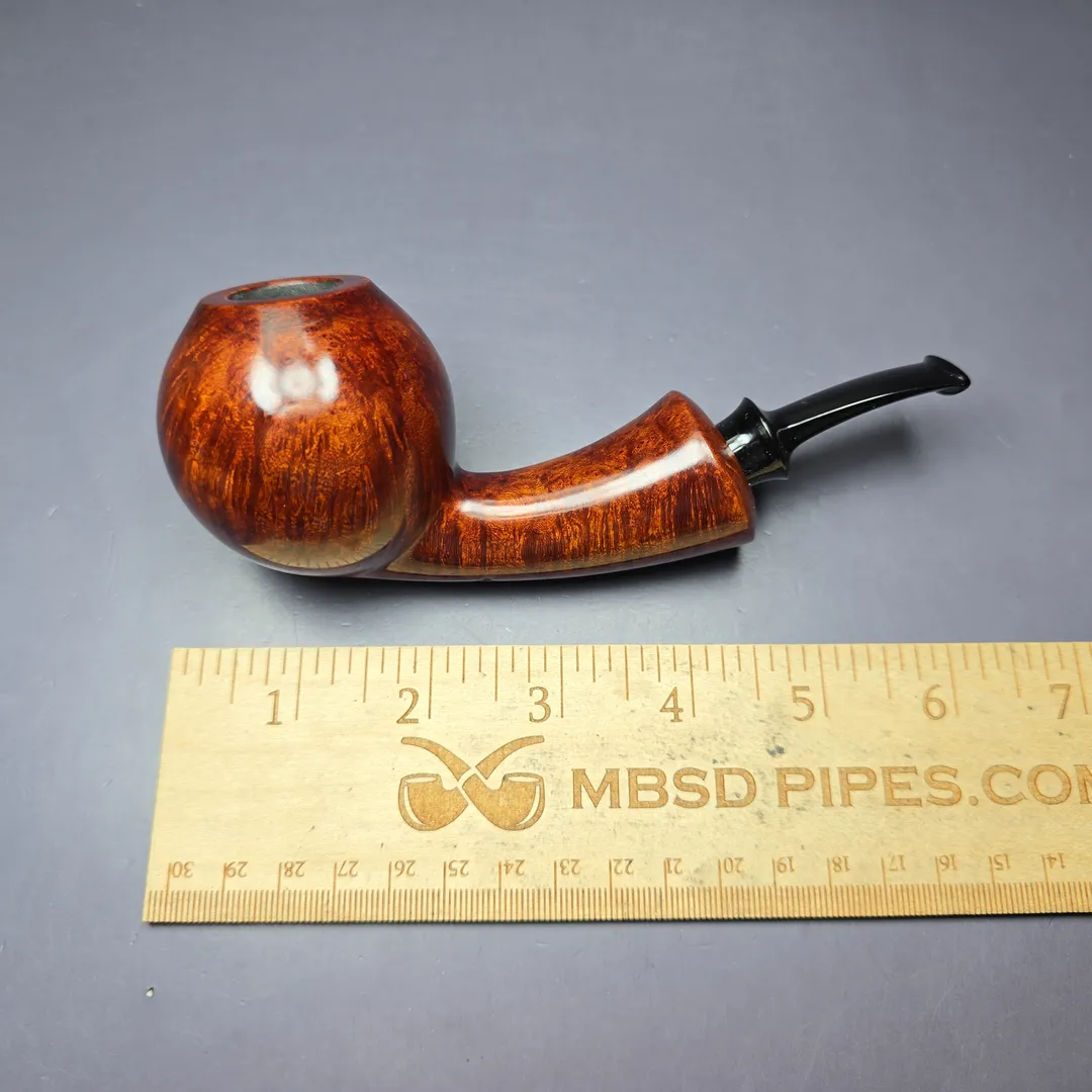 The brandy is a shape that has existed for about as long as briar pipes have, but only with the advent of post-war artisan pipe making has it truly lived up to its name. There’s only so much you can do with a lathe—the principal technology behind traditional briar pipe manufacture—if you really want to capture the essence of a snifter, you’ll need a slightly more “low tech” approach. In that case, it is the sanding disc or belt that is your friend, allowing for a design that balloons just like its namesake. Like the renditions of Danish masters such as Ph. Vigen, Jorn Larsen, and Kurt Balleby, this brandy from Sebahattin Urgan is beautifully round, and even goes so far as to incorporate a slight lip at the bowl’s rim, just like the mouth of its glass counterpart. While many of Urgan’s pipes feature decorative additions, this one has been kept relatively modest, likely because the grain shows off plenty as is.