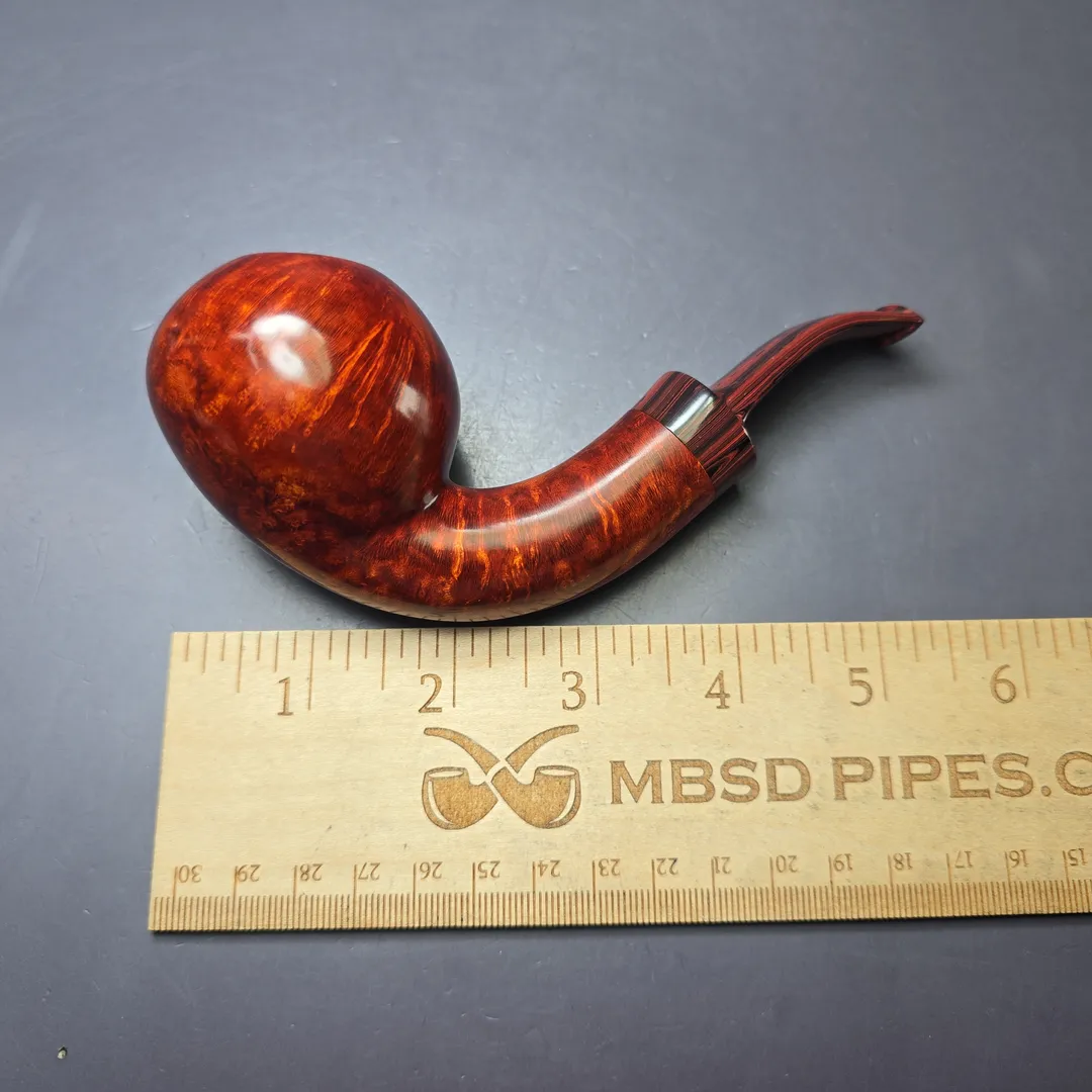 As is often the case between briar artisans, the master-apprentice relationships of meerschaum pipe carving often results in certain proclivities being “passed down,” with many an apprentice favoring the styles of their former masters. With Sebahattin Urgan, however, things are slightly more complex, as his is a lineage that includes both meerschaum carvers and briar artisans. Urgan studied under Emre Bay; Emre Bay studied under Fikri Baki; and Fikri Baki learned a thing or two from time spent with Rainer Barbi, even if Barbi wasn’t Baki’s “master” in the same sense. When this pipe from Urgan landed on my desk, I was quite sure that there must have been at least a little of an influence from the German legend, given its shaping. After learning that Urgan was involved in a small Barbi-related project a while back, along with Emre, it all clicked. It’s a nice pipe on its own merits, of course, though its bulbous, flame-grained, full bent form became all the more interesting knowing the relatively few degrees of separation between it and one of Barbi’s masterpieces.