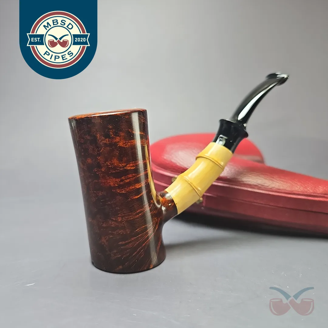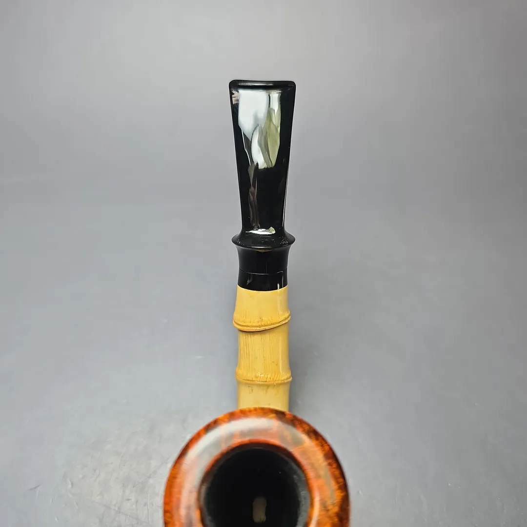 SU Pipes Smooth Cherrywood Sitter w/ Bamboo Handmade Briar Pipe, New