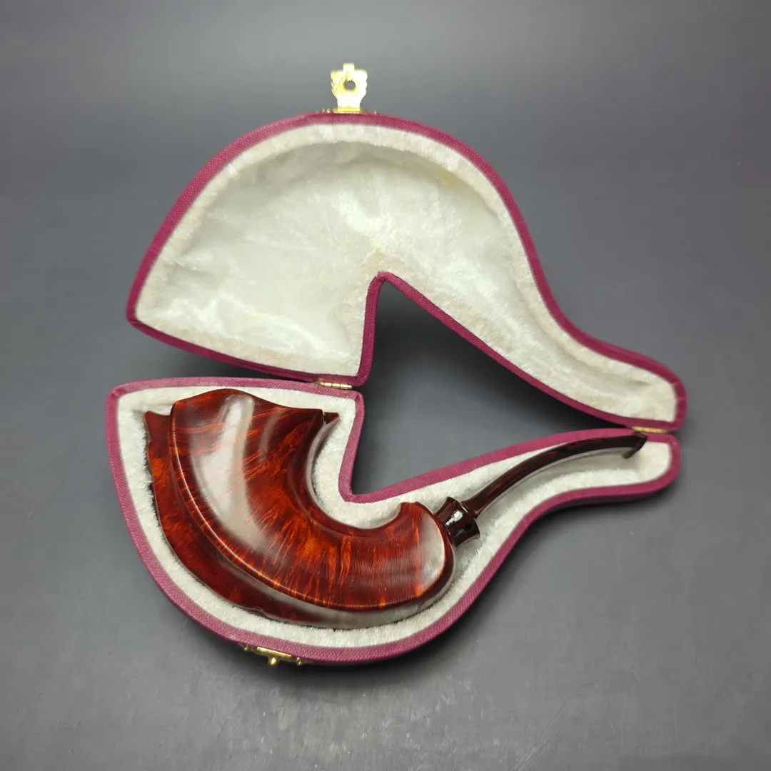 SU Pipes Smooth Horn w/ Case Handmade Briar Pipe, New