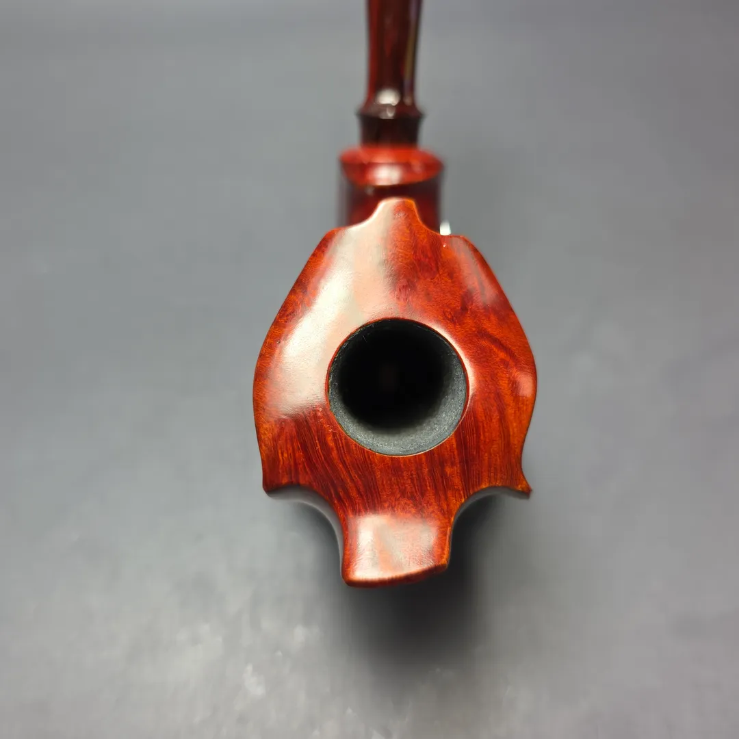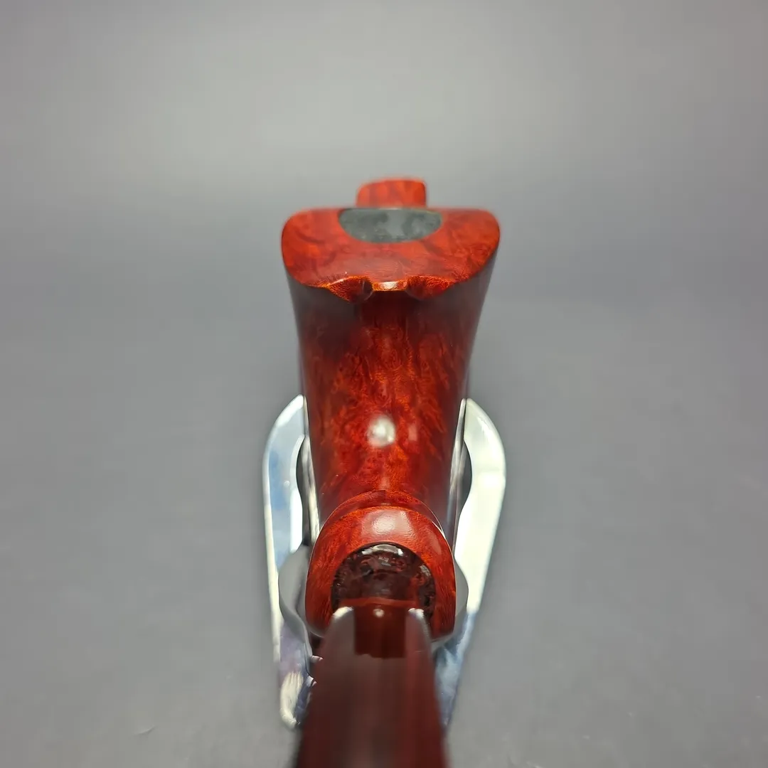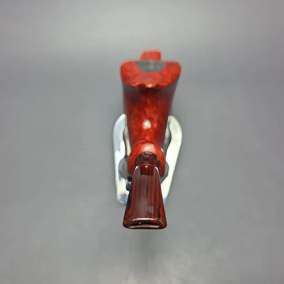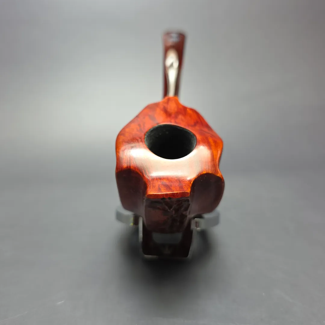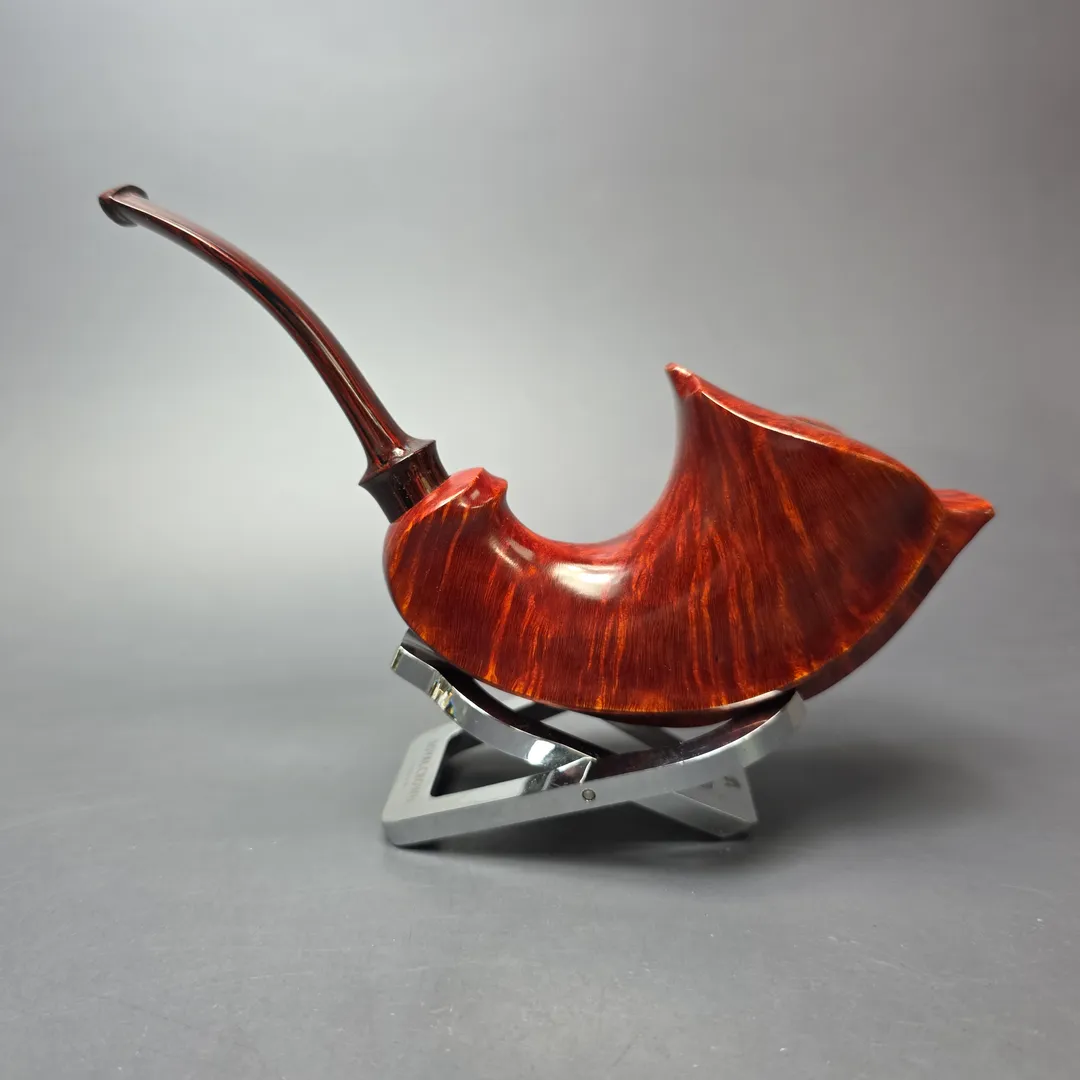 I’ve always thought that, in the last decades of the 20th century and onward, Danish, and Danish-style, pipe making broke even further ground than it had in the decades prior, and in a sense our terminologies for describing such works still hasn’t caught up. I still struggle to think what to call some of the pipes of Benni Jorgensen, Tonni Nielsen, or Teddy Knudsen (other than “excellent”), as while they are often grounded in what had become staples of the craft, they were, nonetheless, substantially different. This pipe, from Turkish meerschaum carver and briar artisan Sebahattin Urgan seems to follow in that same vein, taking the form of what could be considered a horn, or perhaps a cobra of sorts, but whose liberal use of furrows and furls frees it from easy categorization. I suppose when a pipe looks as nice as this one does, it doesn’t really matter what you call it.