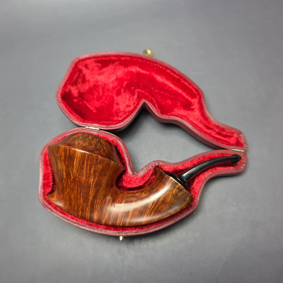 SU Pipes Smooth Rhodesian Sitter w/ Case Handmade Briar Pipe, New