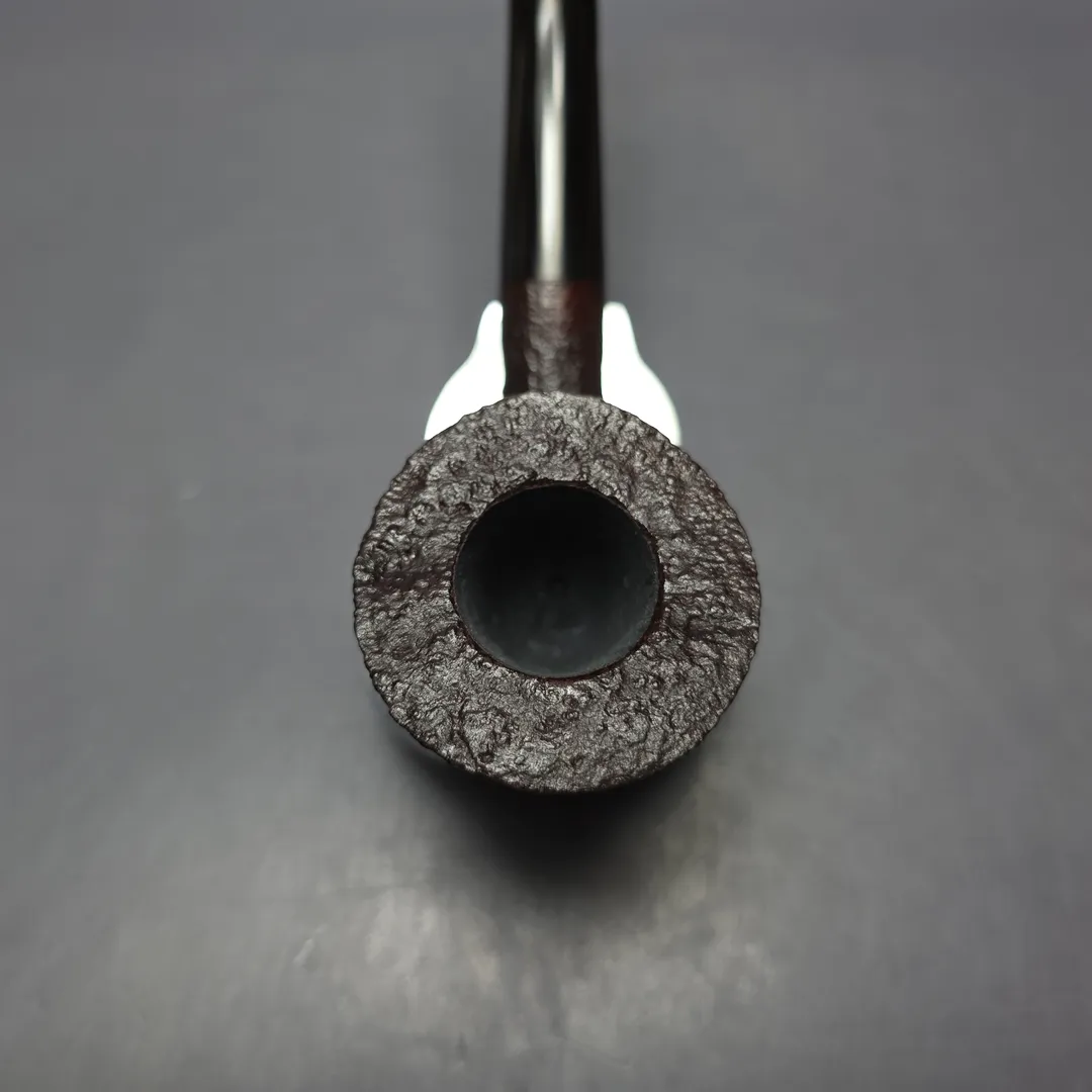 In the case of this pipe, it’s one of the very few sandblasted pipes Teddy makes, a slightly asymmetric Dublin in his signature, semi-freeform style. The proportions are calculated and exact, the finishing is beautifully applied, resulting in consistent, level ring grain; and despite its rather reserved dress, it is still recognizably Teddy’s work.