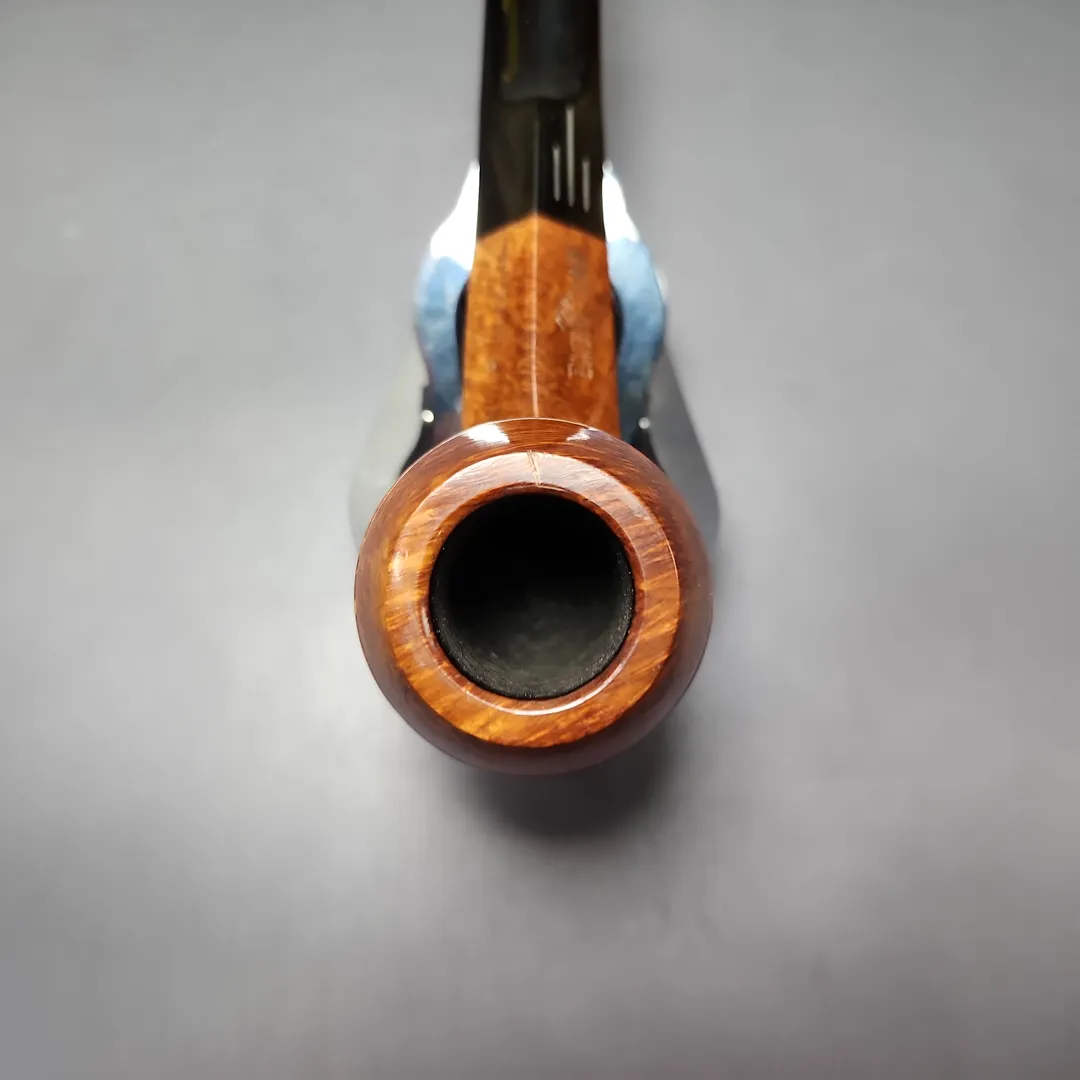 This pipe is completely unsmoked, with an original bowl coating. There are some slight scratches on the bowl and a couple of worn out fills, but nothing beyond cosmetic imperfections.