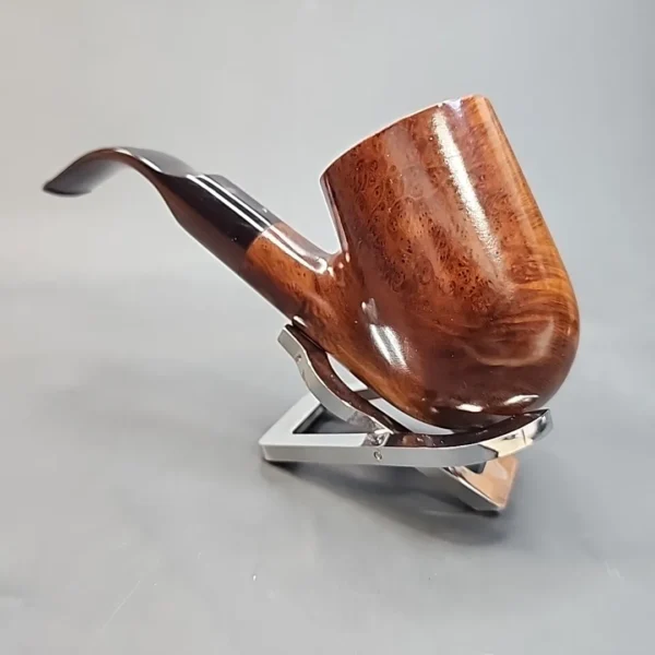 I think of this particular West as like a boutique Oom Paul, otherwise called a ‘Hungarian.’ Defined by its sharp, full bend and tall bowl, the Oom Paul is a fairly classic shape, though one that is often neglected due to the difficulty of drilling its draught hole correctly. Have no fear though – West has pulled this off masterfully, as should be expected. It’s a large pipe with a large bowl, so it’s perfect for a long evening smoke with your favorite blend. It also features plenty of bird’s-eye grain around the bowl, so you’ll also have something nice to look at in between draws.