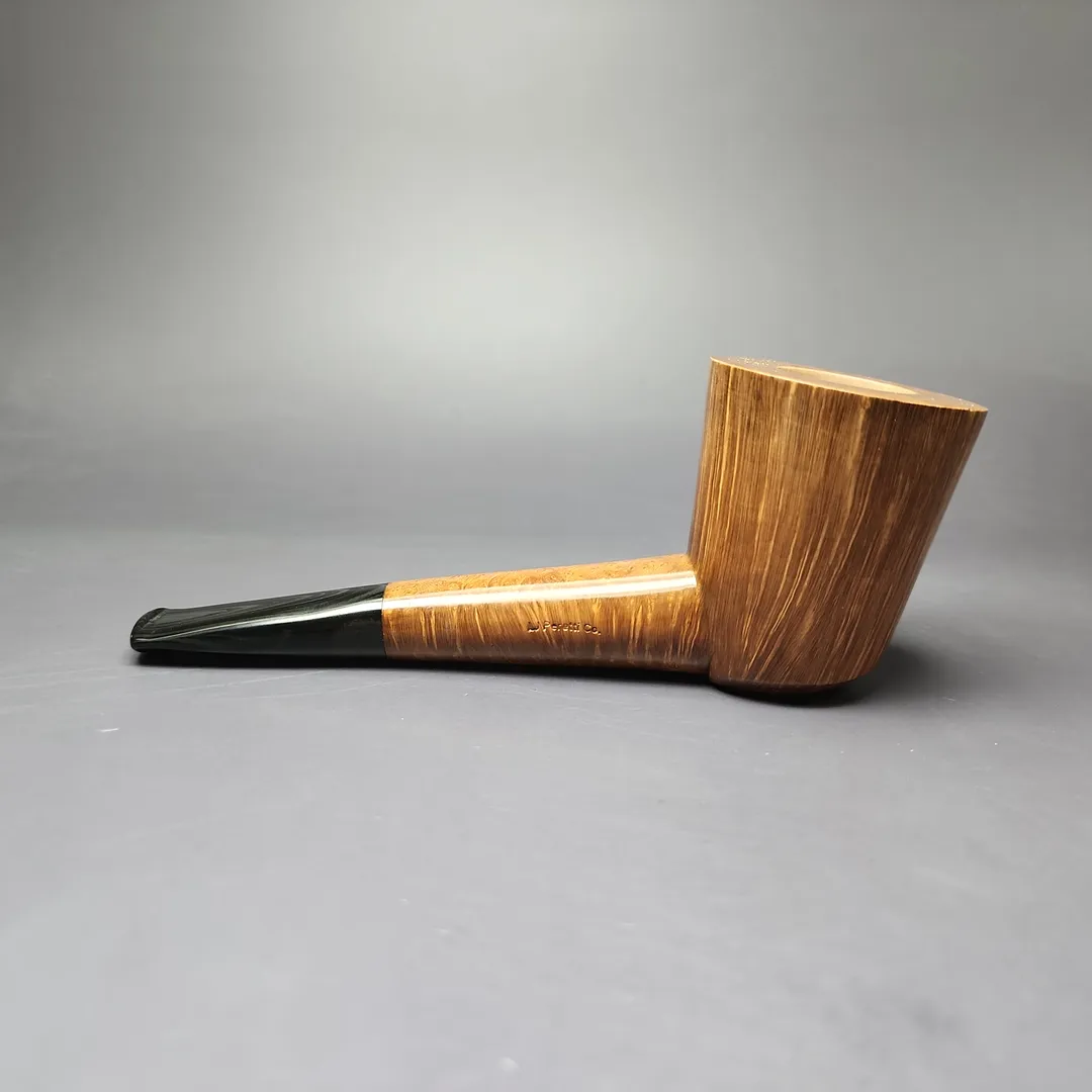 Having revisited the various works of Raymond Loewy, I can certainly appreciate the influence of his aesthetic philosophy on Boston’s Todd Brugman. Loewy’s designs often had a palpable sense of speed, and not just because he helped create a great range of vehicles. Looking at the side profiles of the Studebakers and Pennsylvania railway cars Loewy was responsible for, one can almost see the form of the vehicle “rushing” or “leaping” forward, even when stood still. This Dublin sitter, much like the prince listed recently, has a similarly “leaping” figure from its button to its canted bowl, with the latter having its own “vector” thanks to its cant and marvelously paired straight grain (leaving no wonder as to why the pipe attained Brugman’s highest grade, the “dd”). But there is another designer of sorts that this pipe is reminiscent of, one a lot closer to home as far as our own industry is concerned: Baldo Baldi. The breadth of the bowl and the way that it’s rounded out further than is typical for such a shape is very “Baldi,” as is Brugman’s proclivity for long shanks and short stems. It all makes for a very nice pipe, one with a great mixture of worlds contained within it.