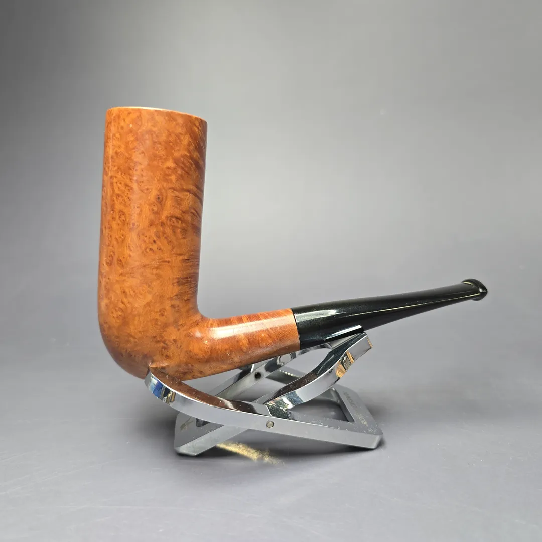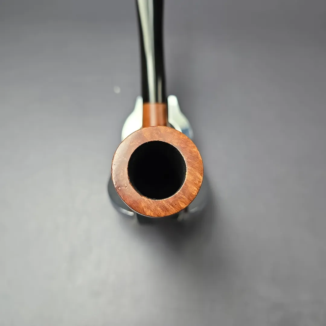 If you’re familiar with Tsuge’s current output, you may notice that this Topper is not the same as the Topper model that Tsuge currently sells. The current one is a relatively simple billiard, but for its narrow chamber. This is an older model Topper, whose origins reside, like so many unconventional pipe designs, in a Danish tobacconist named Pibe-Dan (later Pipe Dan). Like W.O. Larsen, Pibe-Dan had its own on-site workshop, and was an epicenter for post-war Scandinavian pipe-making. The workshop employed, at one time or another, pioneering artisans such as Gert Holbek, Ib Loran, Sven Knudsen, Ph. Vigen, and Tom Eltang. While Pibe-Dan sold pipes in many styles, it was famous for its stack shapes, one of which was even part of the Pibe-Dan logo. These were the “Dan Shape,” or “Reformed,” pipes. Decades later, Japan’s Tsuge produced a few designs paying tribute to the legendary Dan Shapes, which they named the Topper series. This particular Topper appears to have been loosely based on the “Chimney” Dan Shapes, which were the tallest in the line.