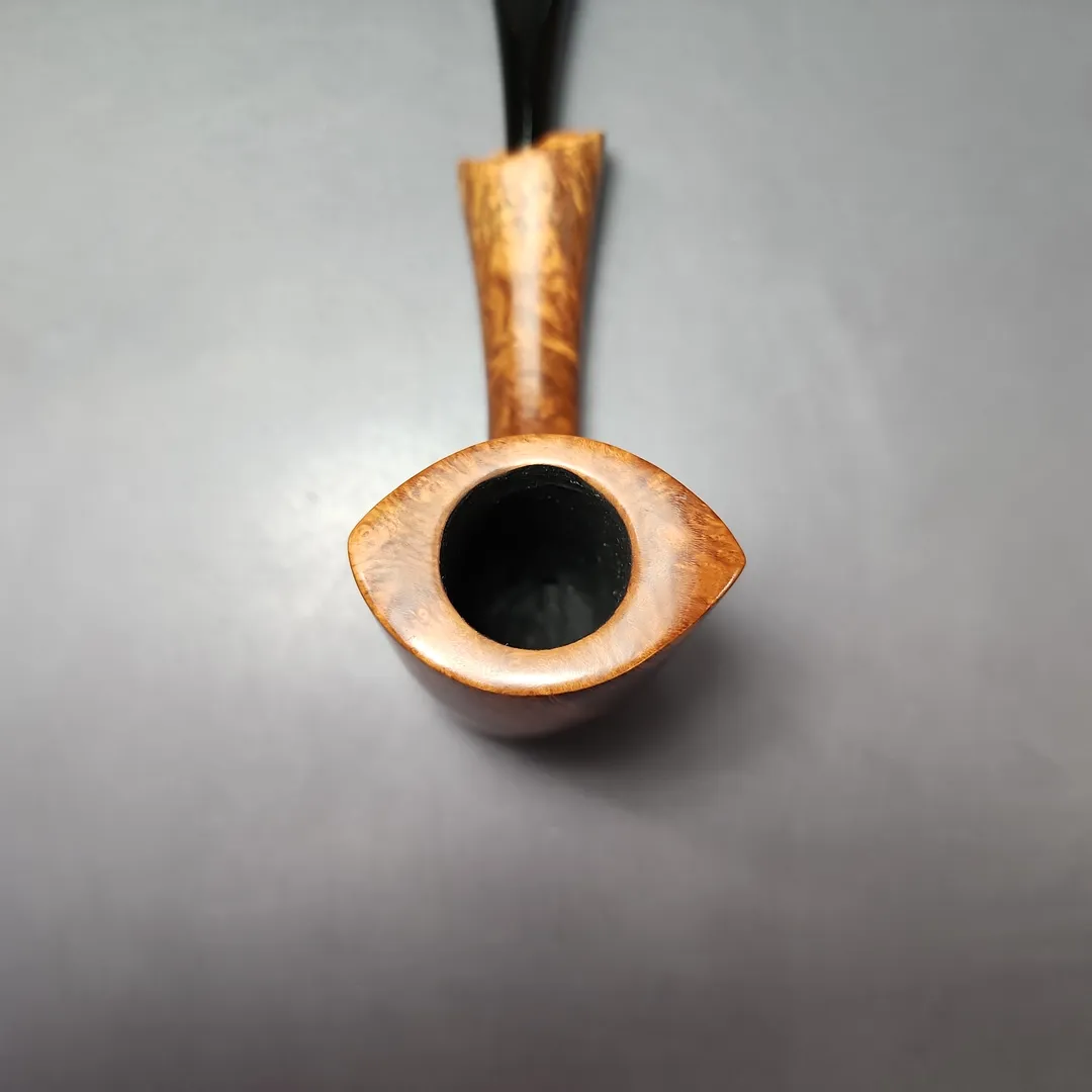 I’m not sure who made this pipe. It is possibly French, by virtue of the “Bruyere Extra” nomenclature on the bowl, or might even be American, with that simply being a nod to the briar being French (as was common in 20th century pipes). It’s an interesting one, however; not only is it exceedingly large, but its bowl, rather than being carved in a more “typical” freehand manner, takes the form of an elliptical cylinder, not entirely unlike the Danish Elephant’s Foot, Shield, or Lens shapes. It’s just one of those mysteries, I suppose.