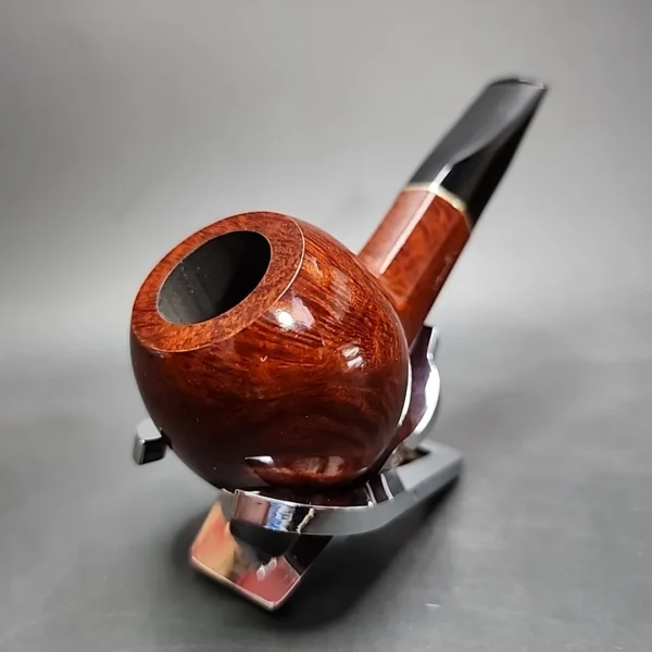 Many countries are often associated with a national ‘style’ in pipe-making. England and France are associated with traditional shapes, such as the billiard and the bulldog; Italy is associated with its pebble-dash rustication; Denmark and Japan are associated with the avant-garde, and so on. This is one example of an eminently ‘German’ pipe, to my mind. It is broadly traditional, being ostensibly a straight apple shape, but it is also very round and ‘thick,’ with an extra distinction lent by a subtly faceted shank. As for the standard markers of a nice pipe, this one has very nice grain, with plenty of fiery patterns and bird’s-eyes covering its plump stummel.