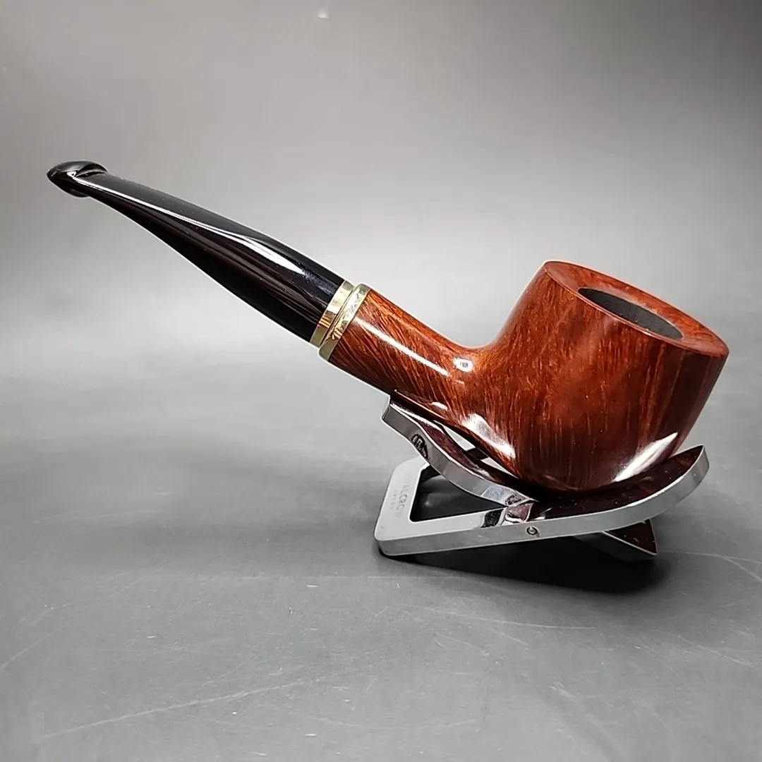 This Vauen is a distinctly German rendition of the traditional pot shape, albeit one with perhaps more than a little influence from Danish masters such as Sixten Ivarsson. As with many German pipes, it is a decidedly broad and squat shape, giving it a satisfying hand-feel. This pipe features an original p-lip style stem, which Vauen and other makes, such as Savinelli, explored in the 20th century.