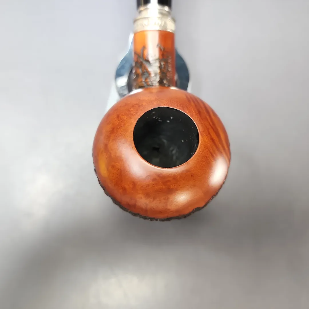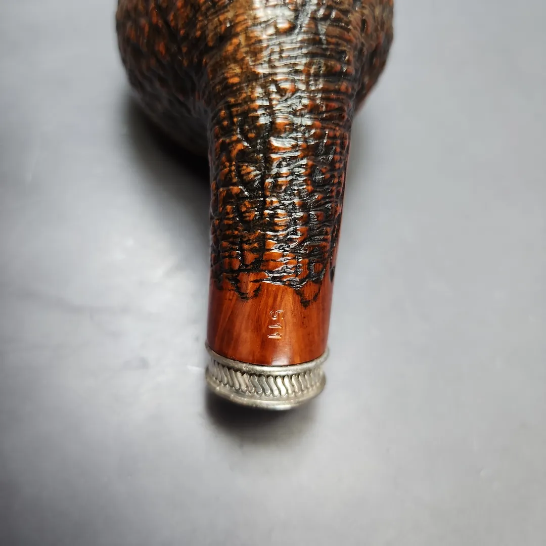 Vauen is less commonly known for its collaborations with famous designers than other makers, such as Stanwell, but the company has nonetheless partnered with quite a few very interesting individuals and companies. These include Oliver Brandt, Radice, Mastro de Paja, and, in the case of this one, Caesare Barontini. The latter, as seen here, tended toward a synthesis of the German and Italian styles; broad and stout as German pipes tend to be, but it also has a typically Italian pebble-dash rustication, along with an ornate silver collar. As far as I’m aware, Vauen hasn’t partnered with Barontini in well over a decade now, making pipes like this one a rare treat to come across.