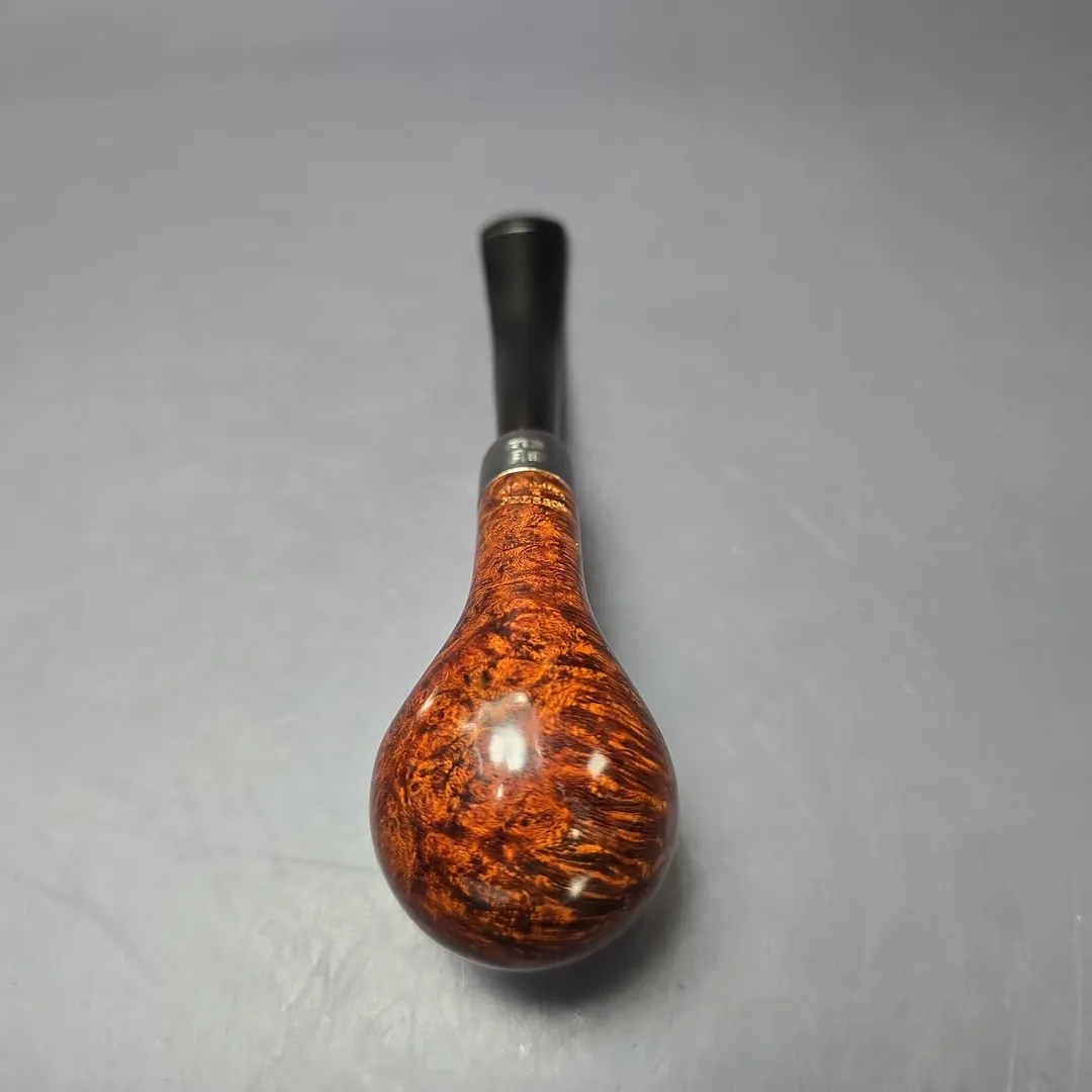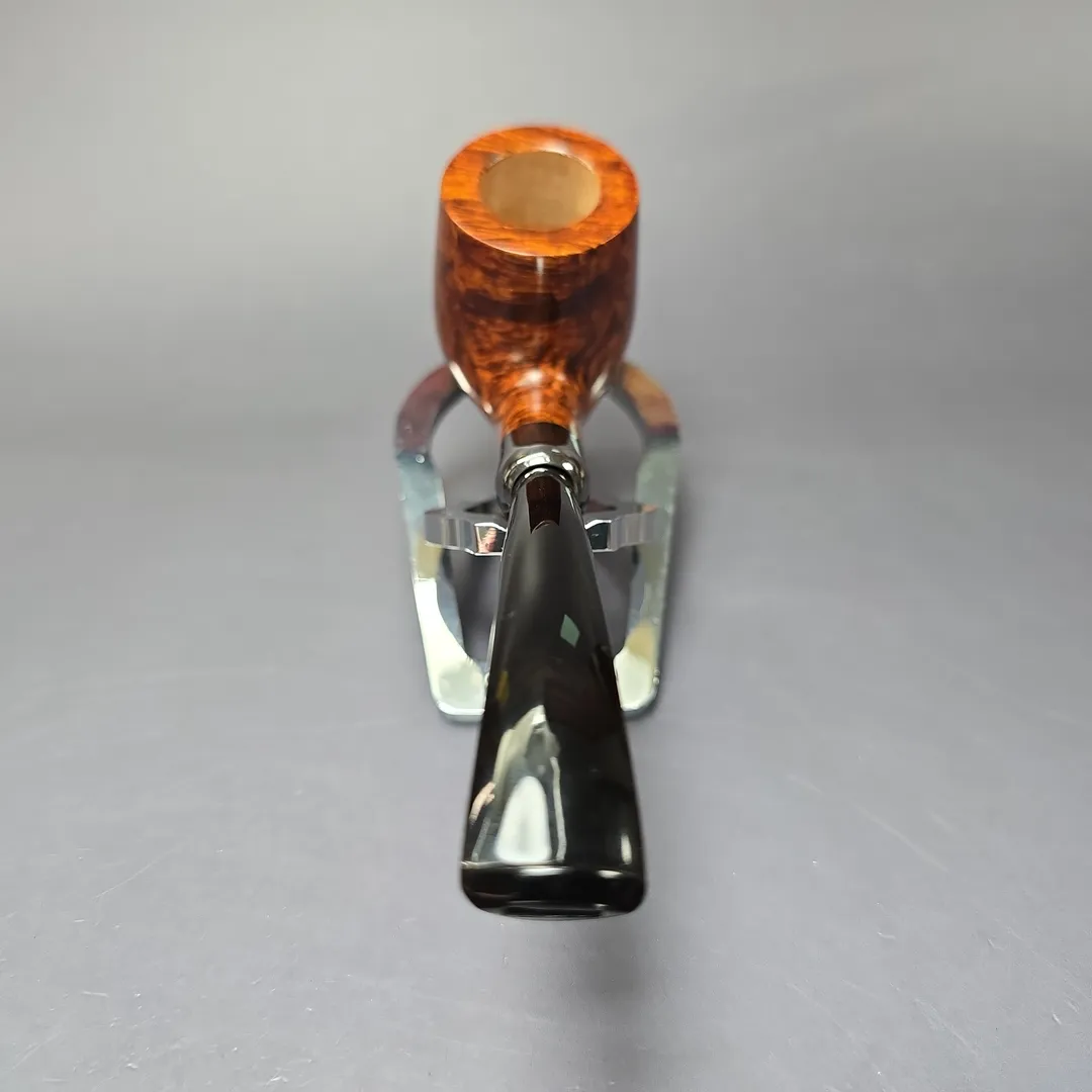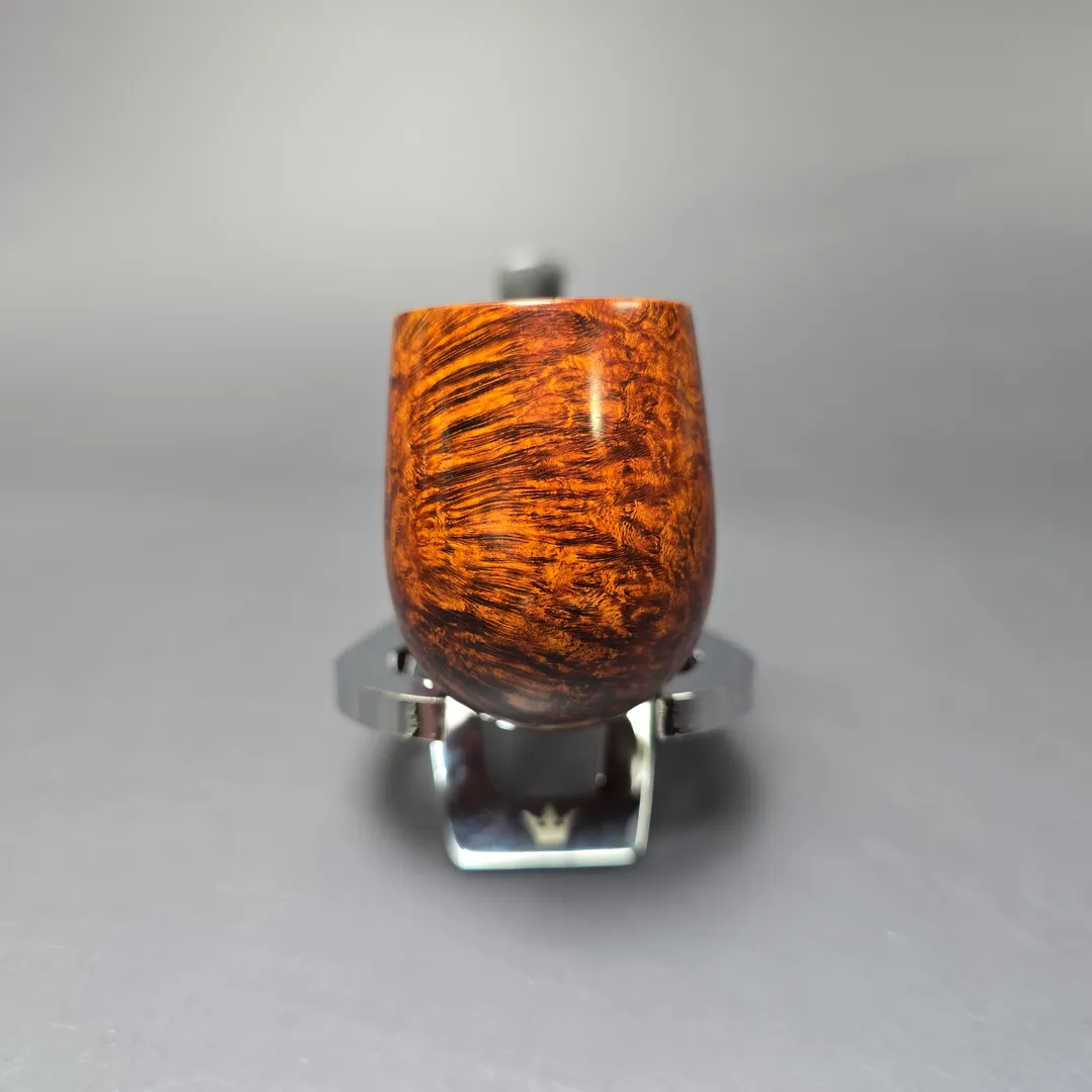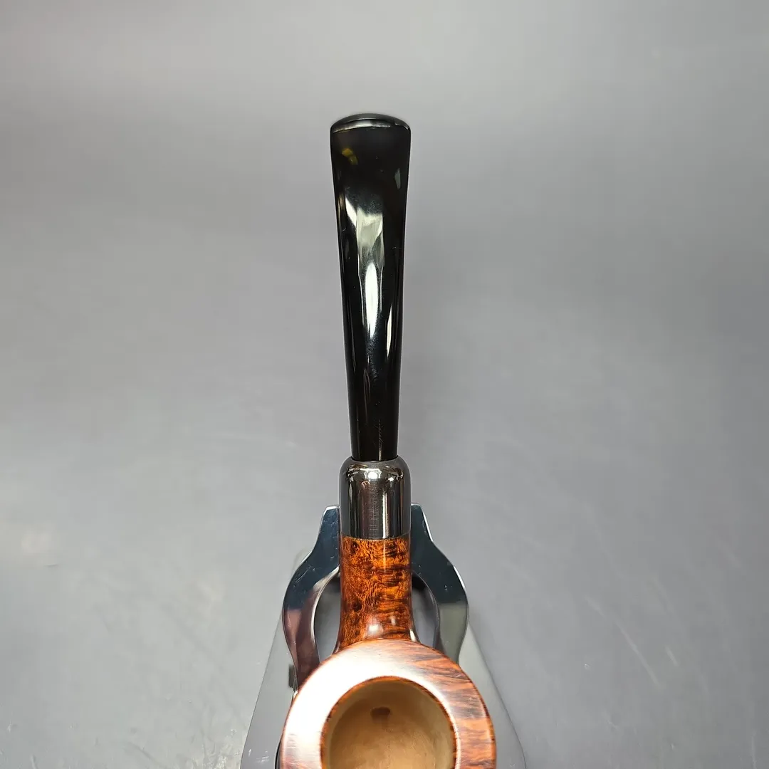 While Martin Vollmer and Anders Nilsson are certainly versatile when it comes to pipe making, and are able to produce remarkably beautiful “Danish” or “Scandinavian” shapes, the quality and demand exhibited by their more classical renditions persists at a level perhaps not seen since the golden age of English pipe manufacturing. This bent billiard is yet another example of two Swedish gentlemen making the pipe that so many British, French, and American companies worked tirelessly to create for around 150 years. A simple bent billiard, with a sterling silver army mount of the half-brothers’ own making, the pipe is at its heart a throwback to the designs of the late 1800s and early 1900s, right down to its basic proportions. One might even call it a love letter to those pipes. Yet it arguably does what those pipes, at least the majority of them, couldn’t, not least because of its perfect, bird’s-eye briar and its finish, which shines even brighter than its precious metal adornment.