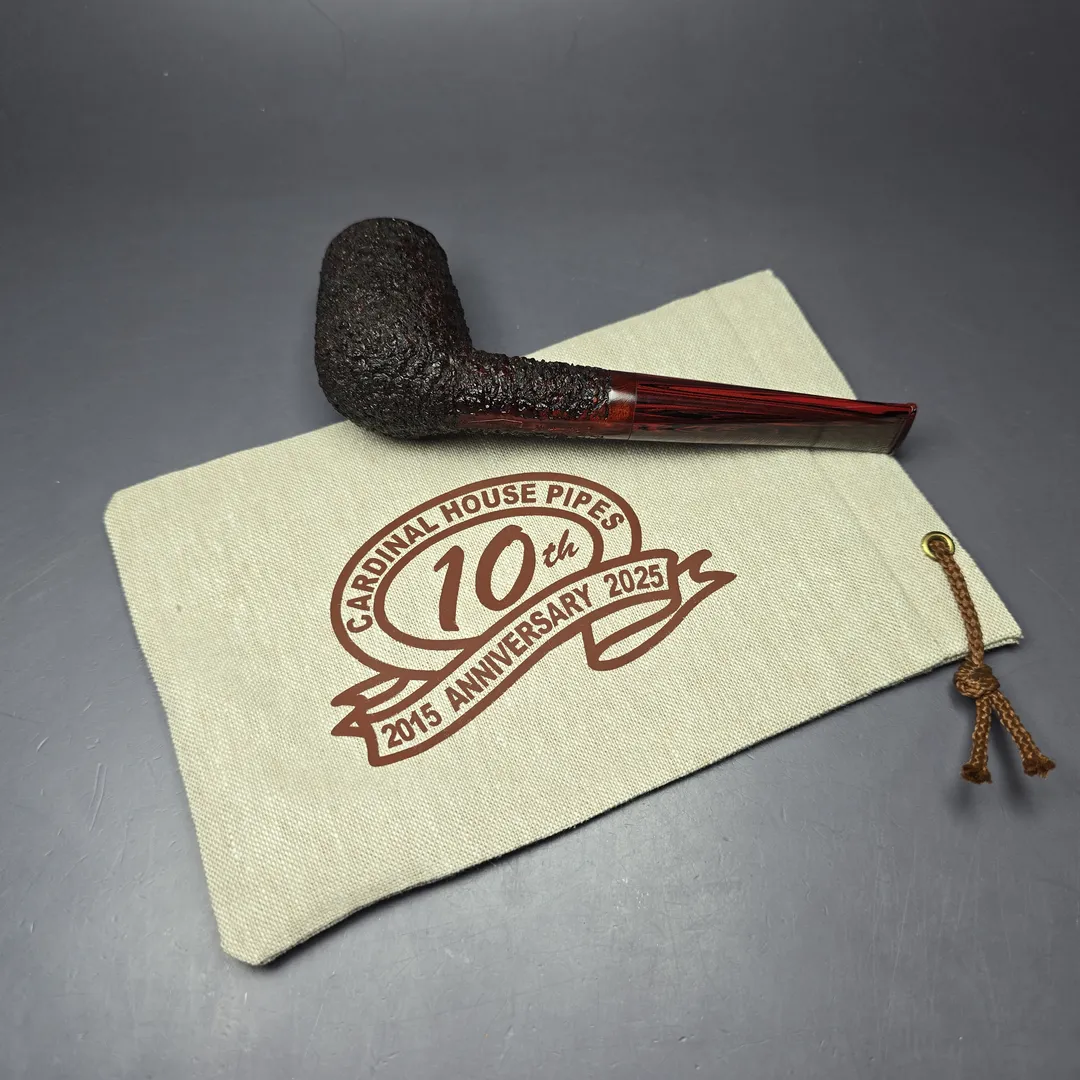 Walt Cannoy 10th Anniversary Cardinal House Munn Rusticated Billiard Handmade Briar Pipe, New
