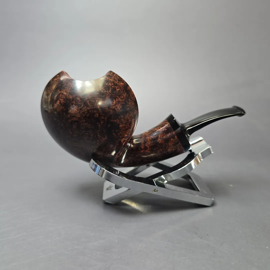 Wandi Riyadi Smooth Asymmetric Disc Blowfish Handmade Briar Pipe, New